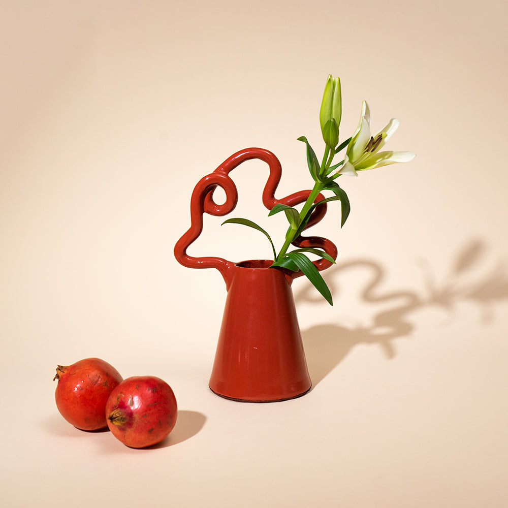 Aluminium casted metal gives this piece strength and durability ( against rust etc), its vibrant hue and swirling top make for a unique eye-catching addition to your home decor. Simply put, it's the perfect pop of colour for a space.