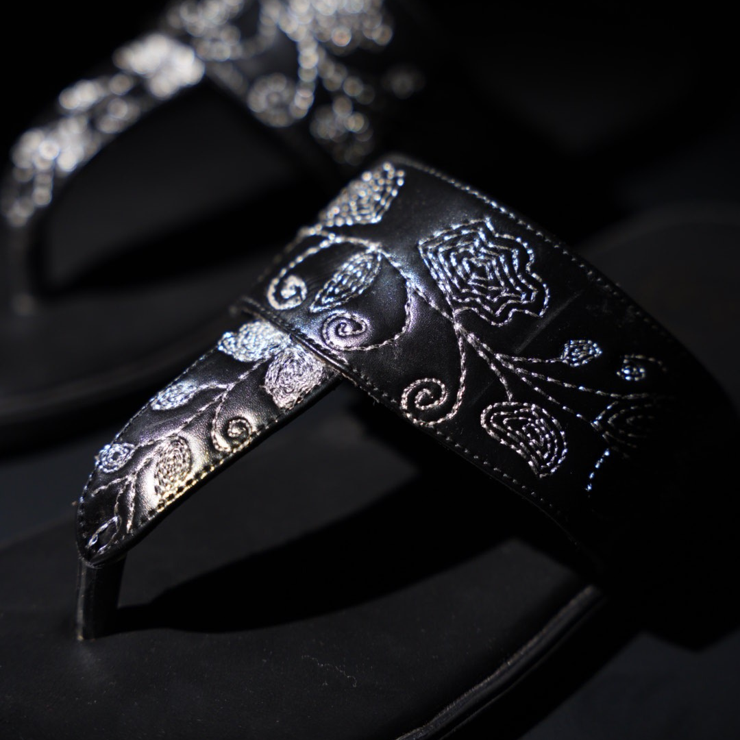 Inspired by ancient tradition and modern detail, the black T-Rad Sandals from Monkstory are a celebration of timeless Indian artistry. Featuring intricate silver floral embroidery on a bold black base, these sandals redefine ethnic footwear. The comfortable footbed and cruelty-free construction make them the perfect mix of elegance and ease — ideal for festive evenings or spiritual mornings.