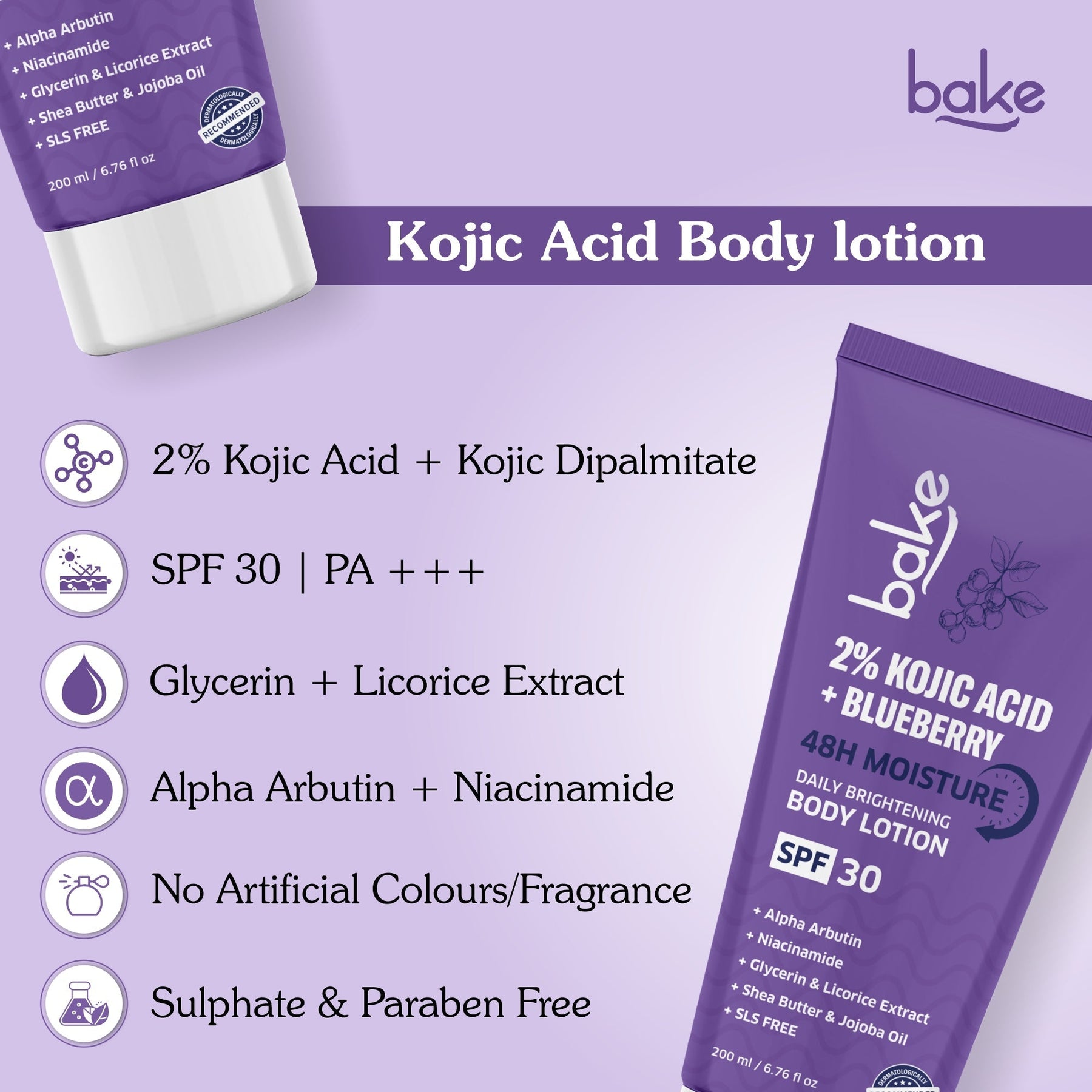 The BAKE Tan Removal Body Care Combo is a powerful duo designed to target stubborn tan, pigmentation, and uneven skin tone. Infused with Kojic Acid, both the body lotion and soap work in synergy to gently cleanse, exfoliate, and lighten dark spots while deeply nourishing the skin. The soap removes impurities and dullness, while the lotion locks in hydration, prevents dryness, and boosts radiance for visibly brighter, smoother, and even-toned skin. Perfect for daily use, this combo is suitable for both men and women.