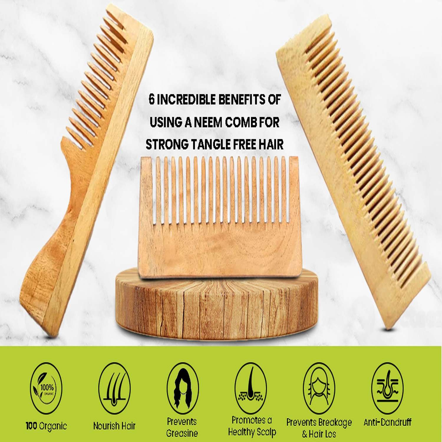 Tanman Organics Pure Kacchi Neem Wood Comb Pack Combo -05 (Pack of 3)