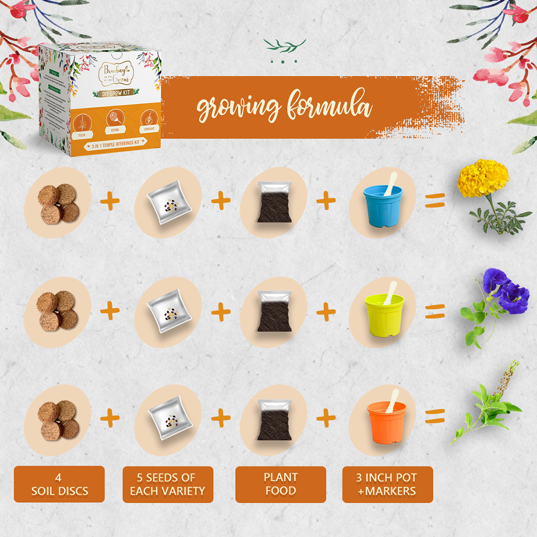Bombay Greens Temple Offerings Kit - Tulsi, Genda, Aparajita