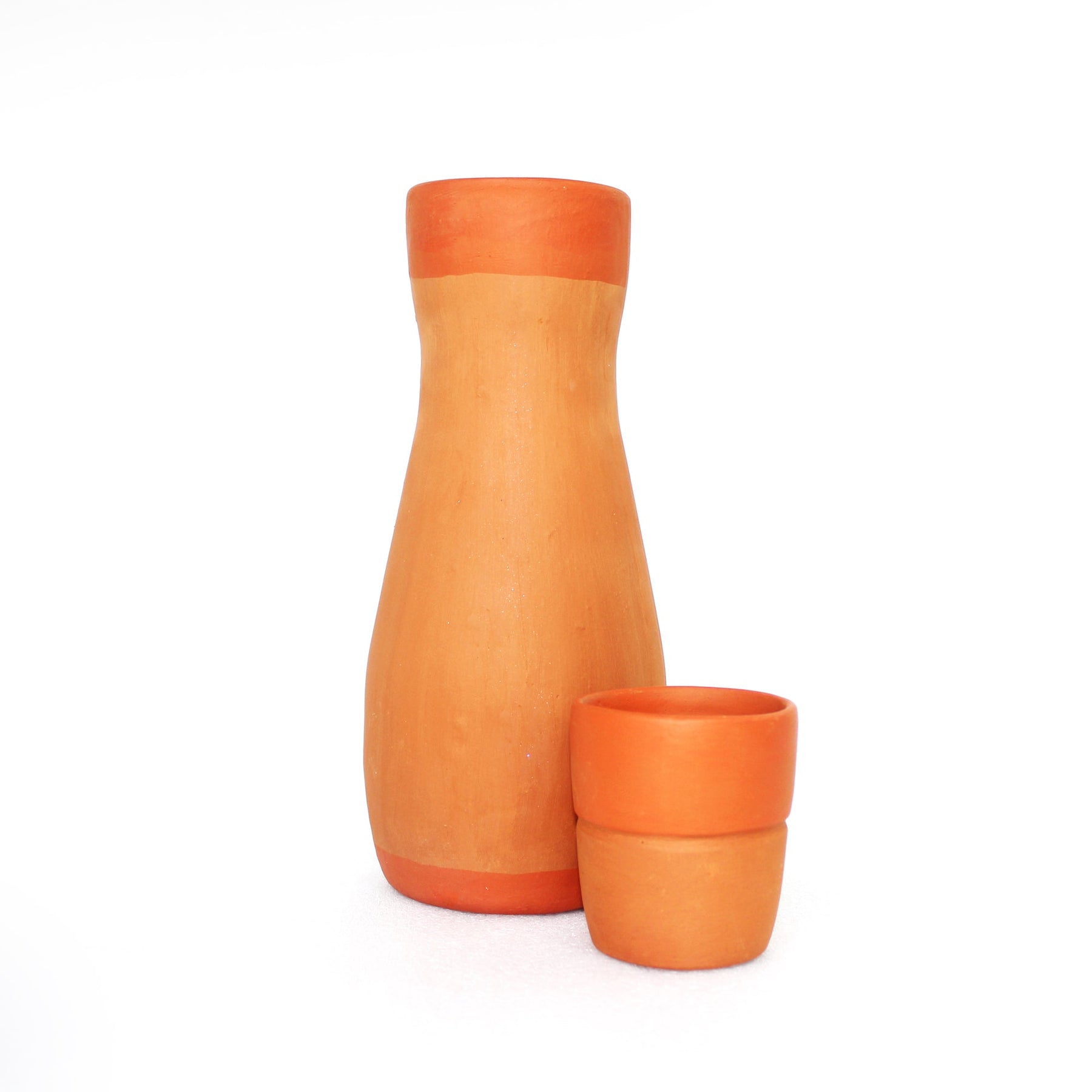 | Care Instruction | Terracotta Utility Products are of 2 types: Glazed and Non-Glazed. Glazed products can be used like ceramic products where top surface can be cleaned with normal washing methods with soft soap or dish wasting soap. Non-Glazed products like water bottles or serving bowls which are having natural property of burnt clay - surface is porous in nature and can absorb water and oil. Water bottles must be cleaned before each filling. It is highly recommended to wash the inside part thoroughly with hot water first and then with normal drinking water along with few lemon drops to remove smells if any. There may be some water leakage through the surface of the water bottle because of the porosity and this property keeps the water cooler than outside temperature becaue of evaporation with latent heat transfer. This is very normal property of terracotta water bottles or pots (matka). It is not recommended to use this type of non-glazed terracotta pots or bowls for oily foods. |