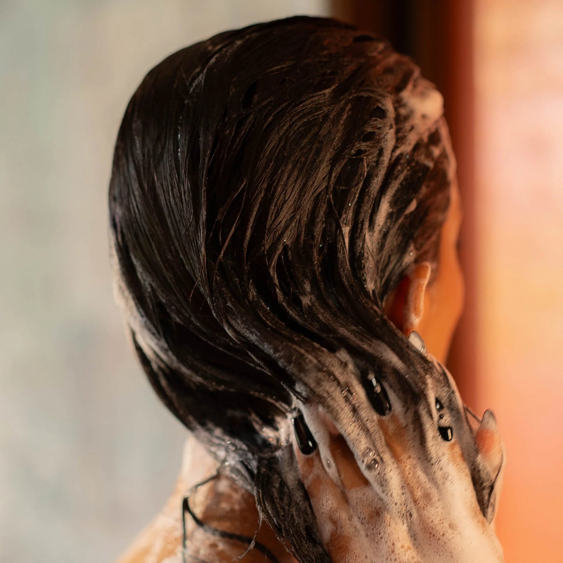 Step 2: Rub the bar between your palms or directly on hair to create lather.