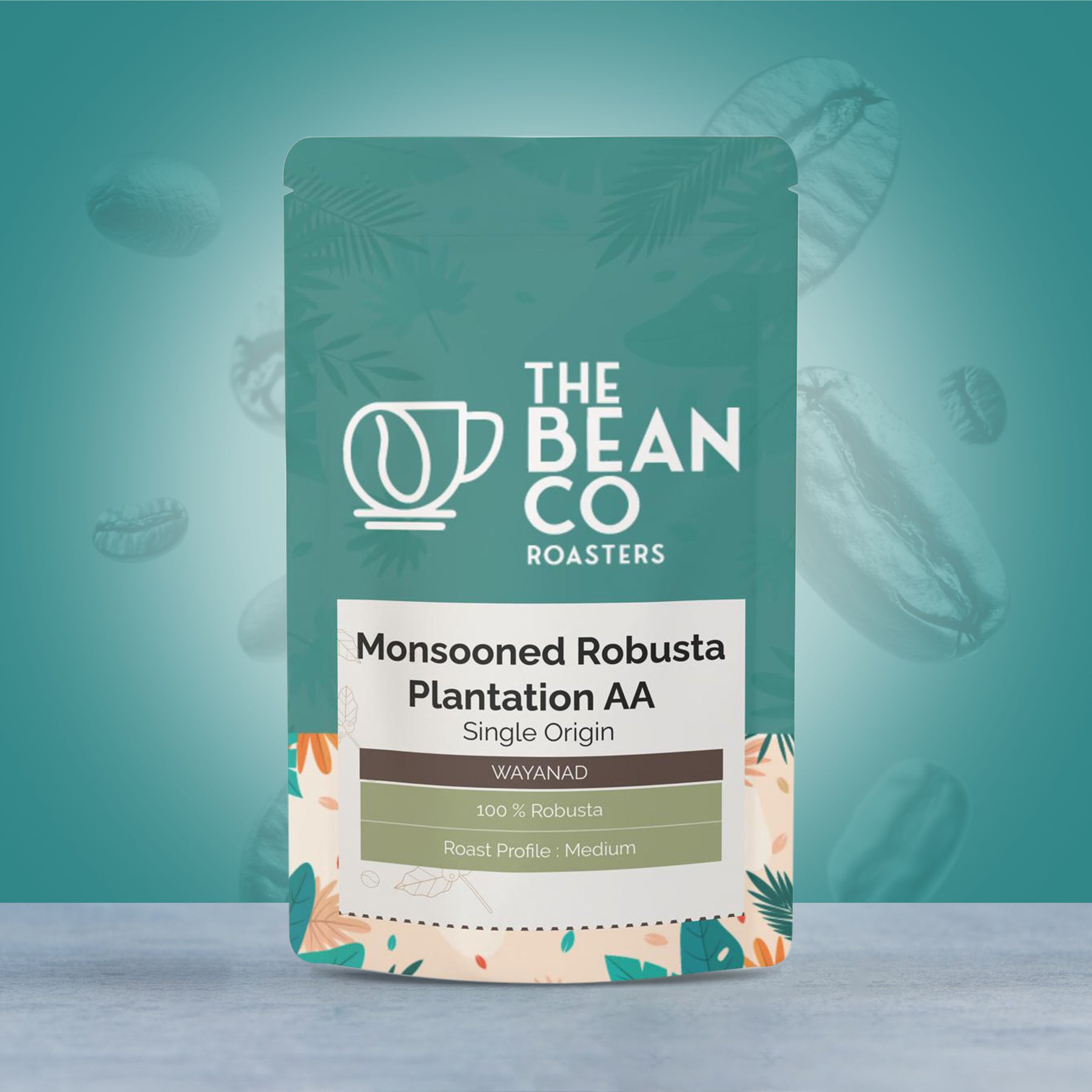 The Bean Co Roasters | Plantation AA Monsooned Robusta Coffee Beans (GI-Tagged), Wayanad Kerala Single Origin | Premium Bold & Full-Bodied | AA Grade 100% Robusta with Rich Aroma & Thick Crema