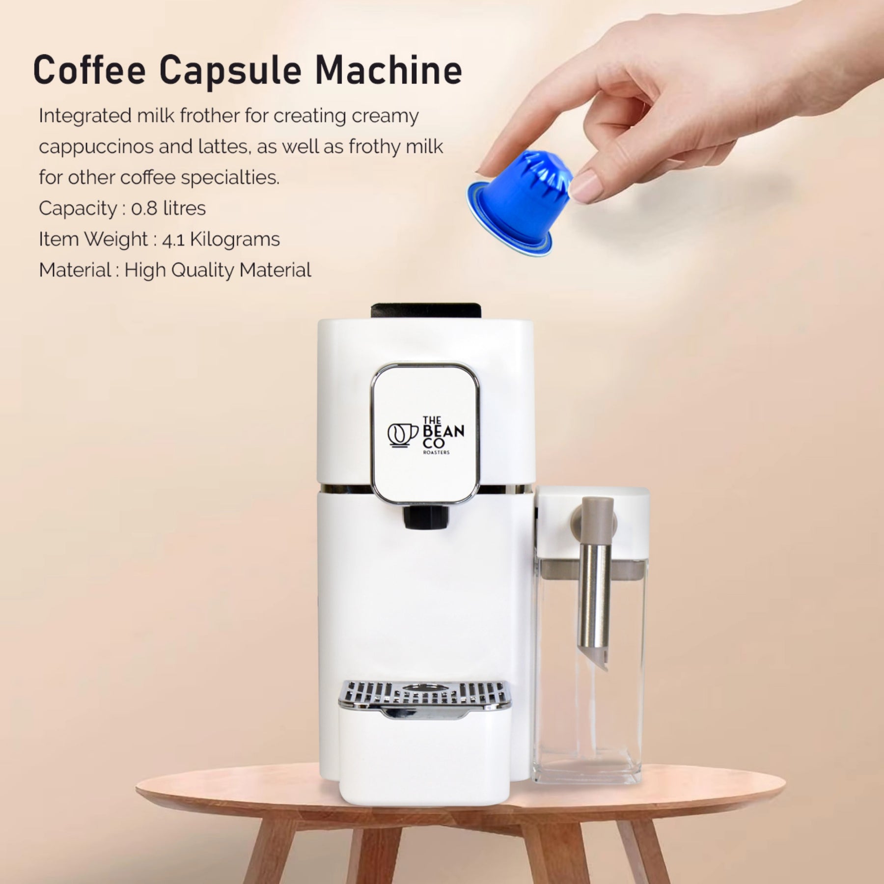 The Bean Co Roasters Coffee Capsule Machine with a milk tank attachment | Espresso Coffee Maker | 19 Bar Pressure | | Compatible with Nespresso Pods