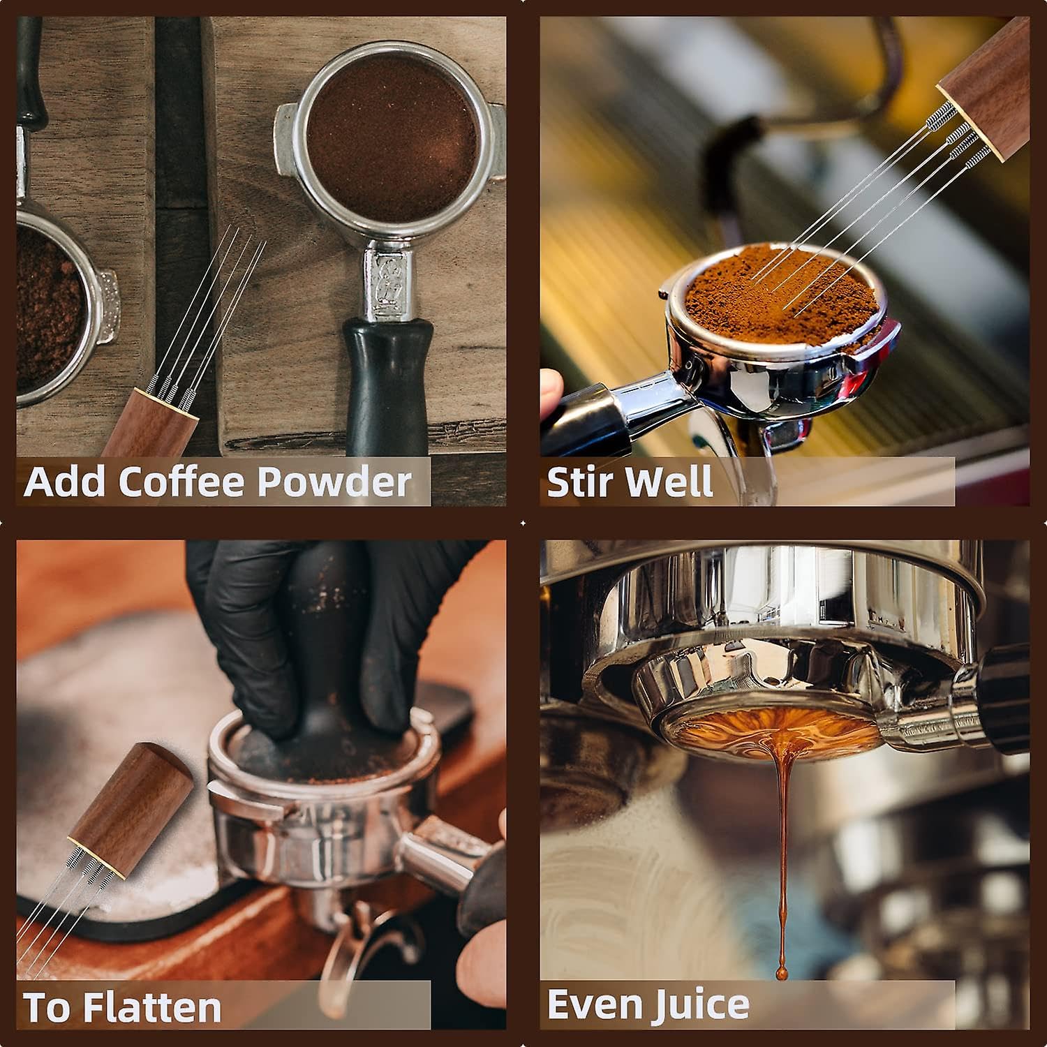 This coffee stirrer uses 5 fine 0.4mm needles which help to distribute the coffee evenly in the filter when the barista is making the coffee to promote a more even extraction and better espresso. Eliminates clumping and improves consistency.