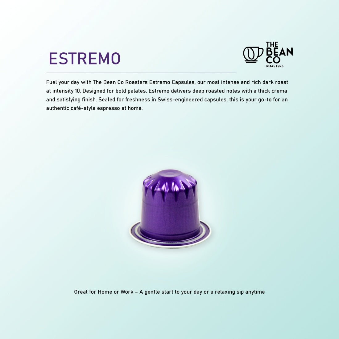 The Bean Co Roasters Estremo Aluminium Coffee Capsules | Intensity 10 | Intense & Rich | Dark Roast | 100% Premium Arabica