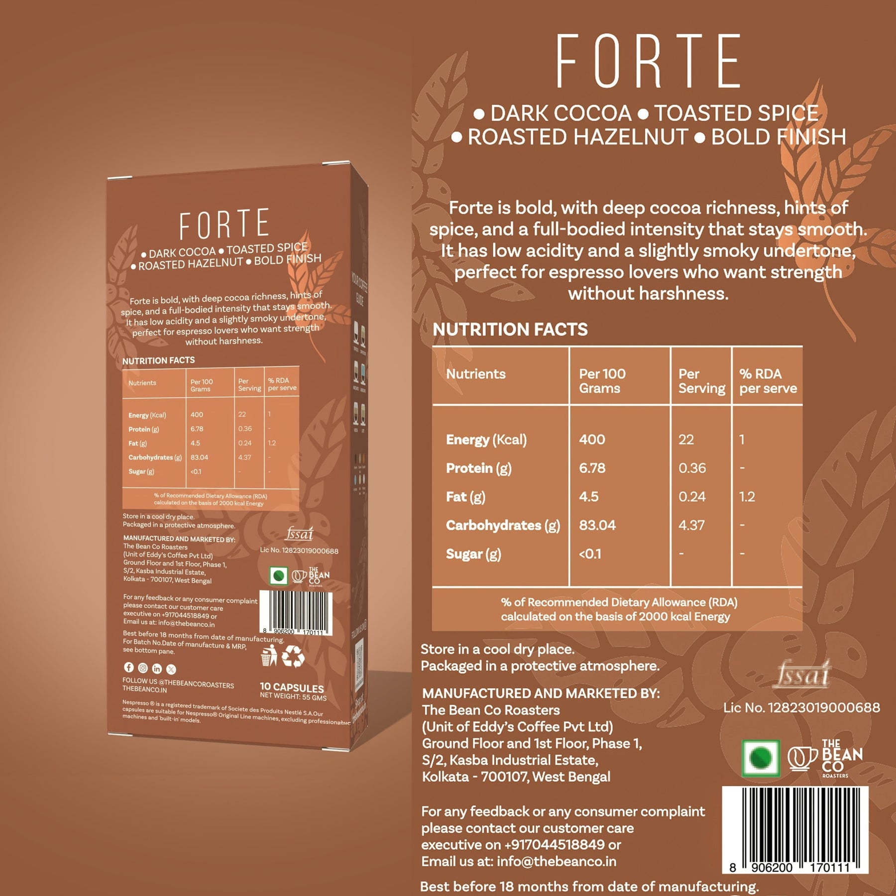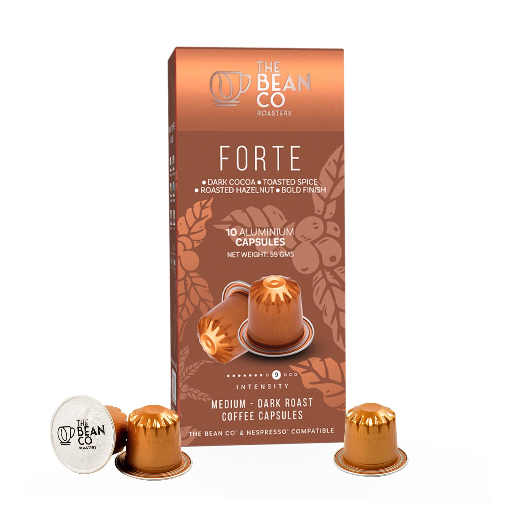 The Bean Co Roasters Forte Aluminium Coffee Capsules | Intensity 9 | Bold & Full-Bodied | Medium - Dark Roast | 100% Premium Arabica