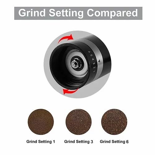 6 EXTERNAL ADJUSTABLE SETTINGS - The External Settings of our Burr Grinder makes it more convenient than traditional internal design. With 6 Preset Adjustable Settings, This coffee mill can meet needs for different coffee styles .
