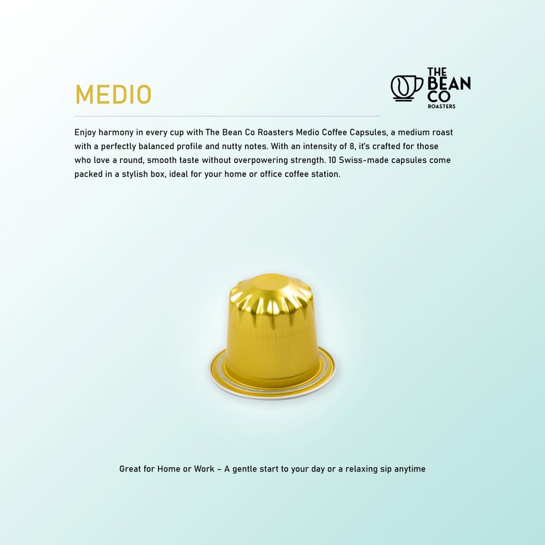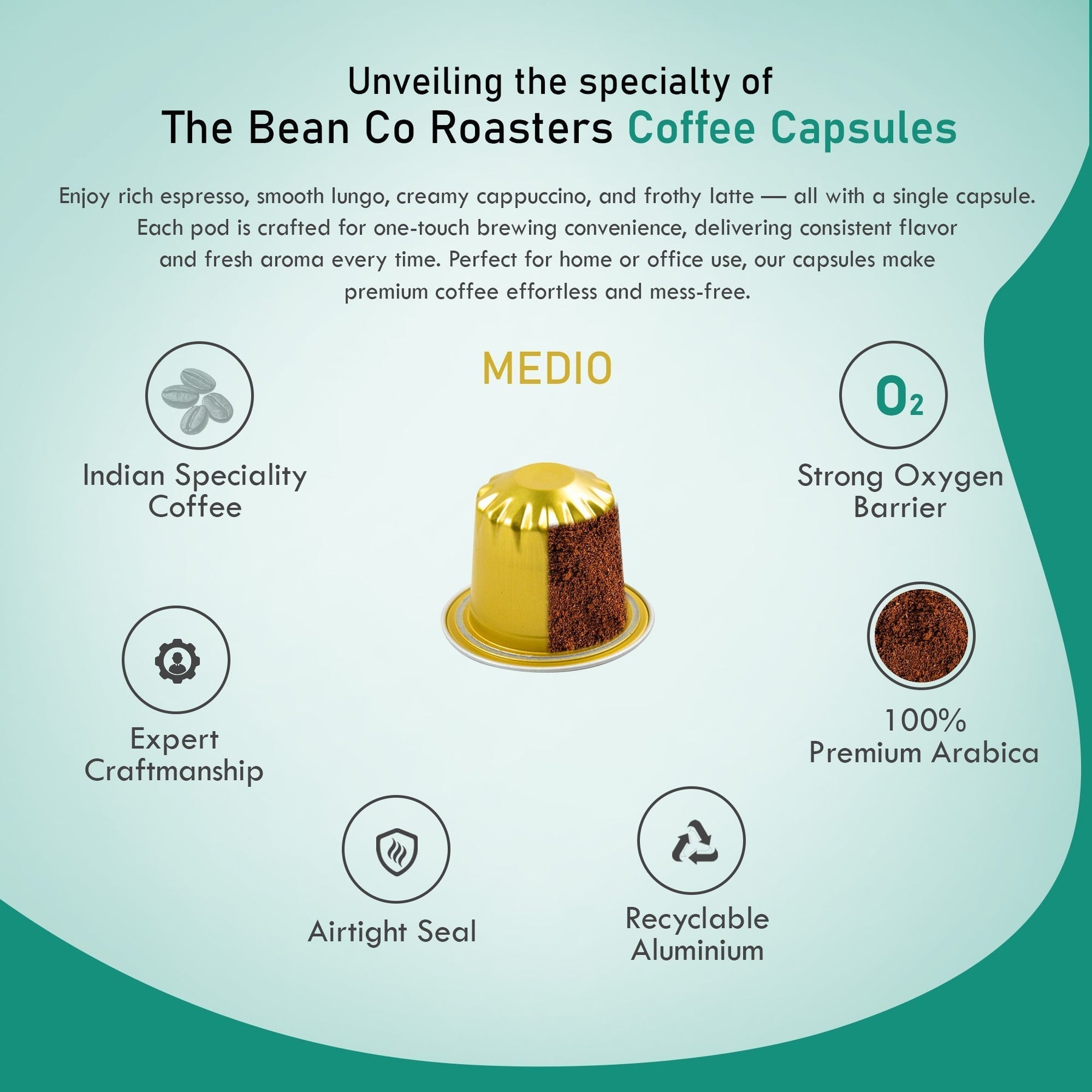 The Bean Co Roasters Medio Aluminium Coffee Capsules | Intensity 8 | Balanced & Nutty | Medium Roast | 100% Premium Arabica