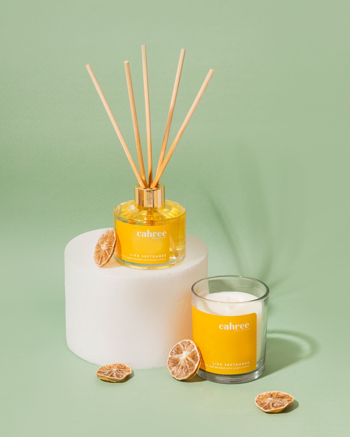 Both in the scent of Earthy Sage And Bright Lemon