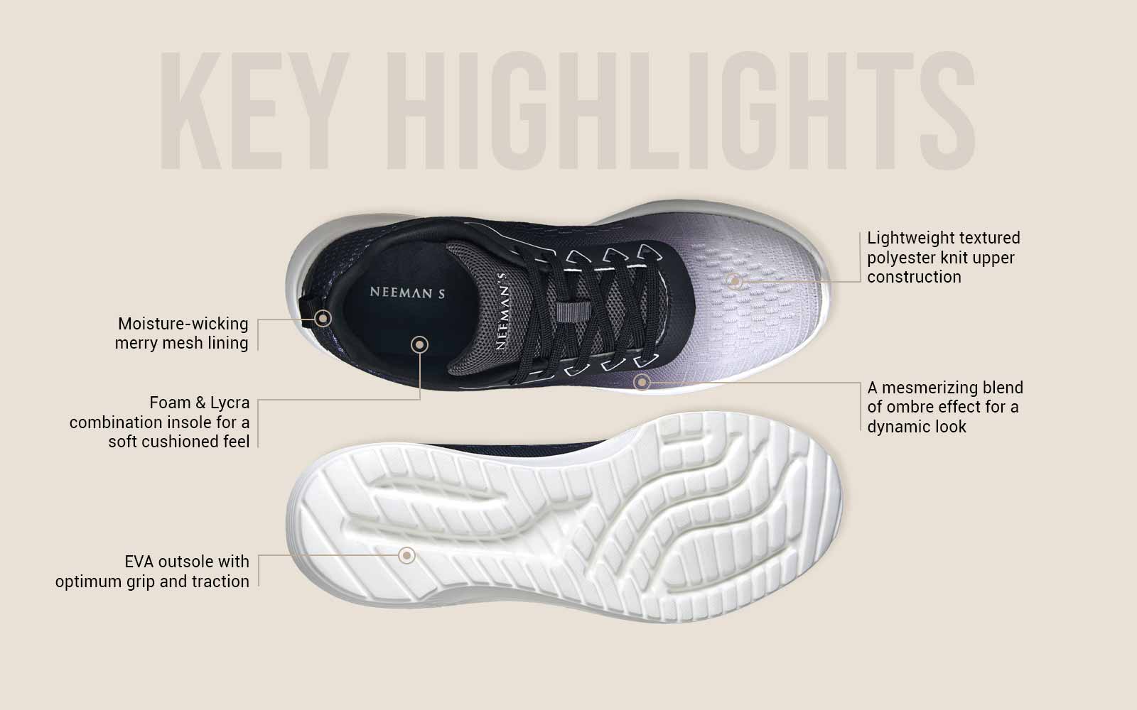 Call it a functional accessory or a mouthpiece for your style expression, the Loungesters will feel like your own personal lounge that you’ll want to take with you everywhere. With an unmissable visual feast of ombre color play and a comfortable treat of soft, cushioned & luxurious performance, these sneakers for men will add depth to your movement.