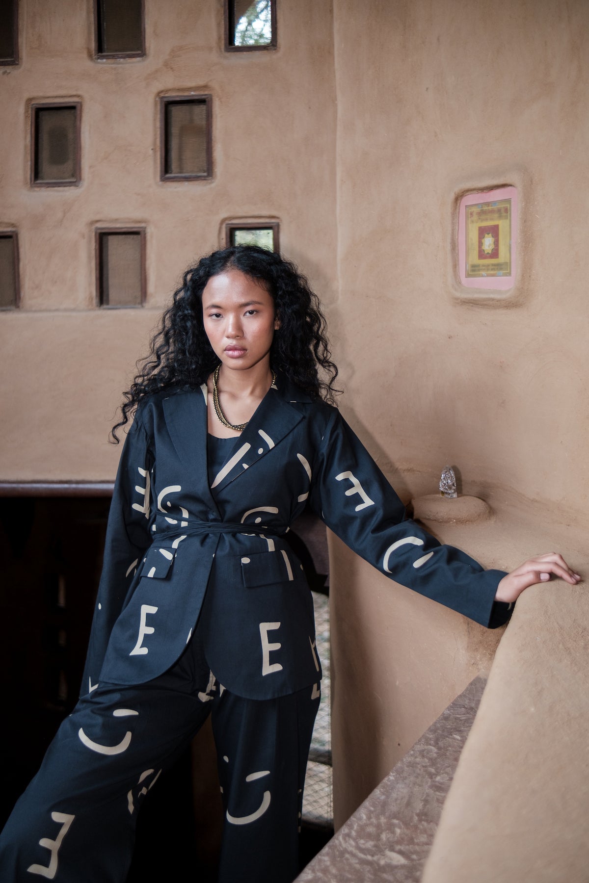 The Terra Tribe Black Line Printed Cambridge Blazer