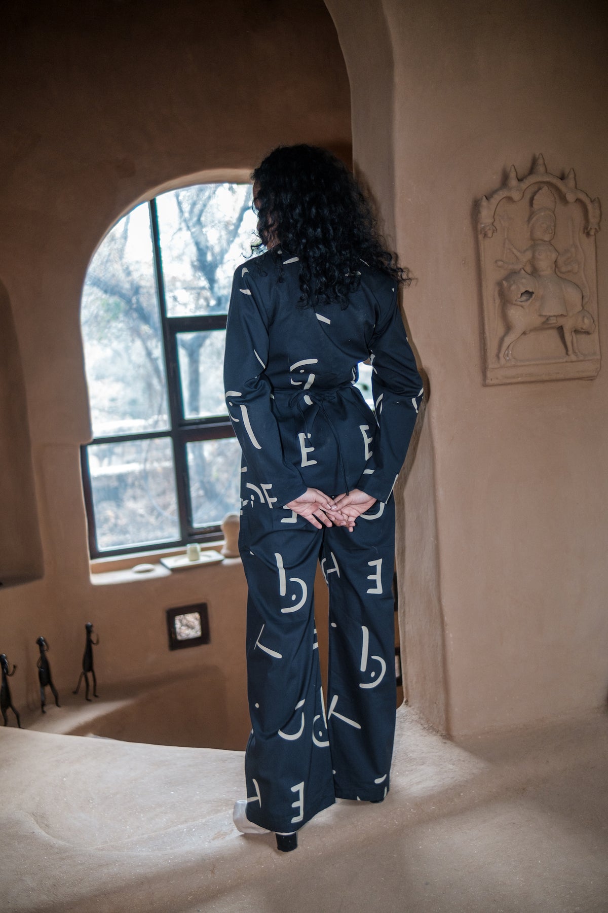 The Terra Tribe Black Line Printed Friday Flared Pants