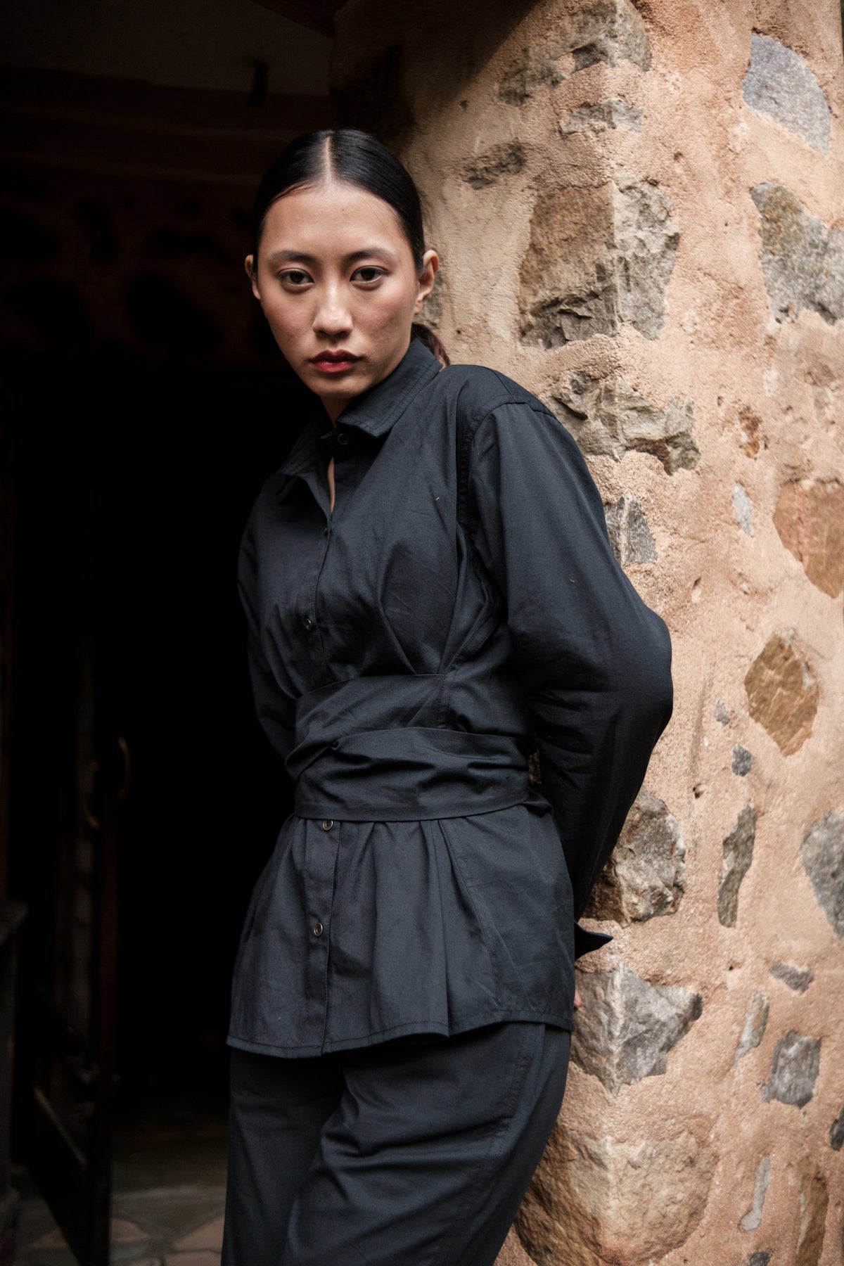 A truly special everyday wrap shirt that seamlessly transforms from an oversized shirt to a fitted dress shirt taking you from the day to night.