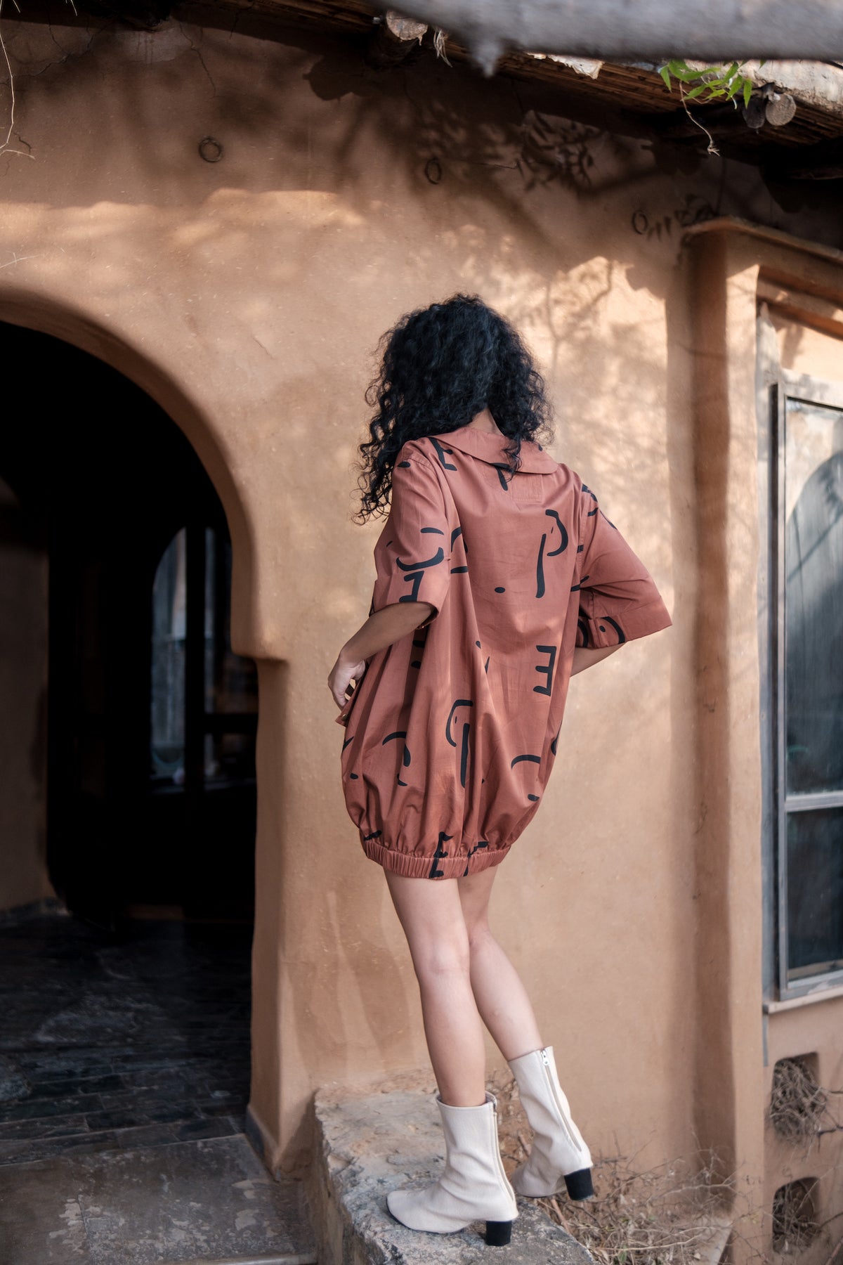 The Terra Tribe Copper Line Printed Sydney Shift Dress