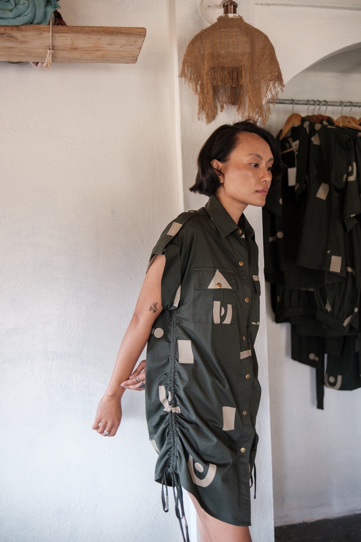 The Terra Tribe Deep Green Triangle Printed Sunrise Gather Shirt