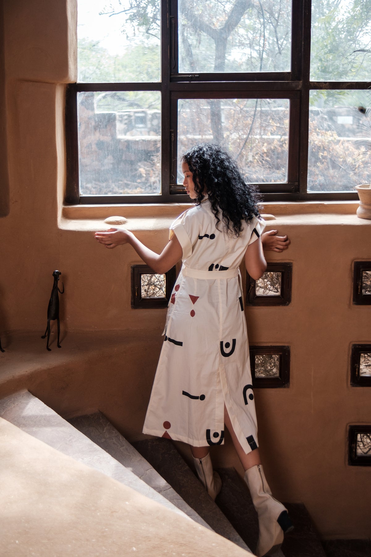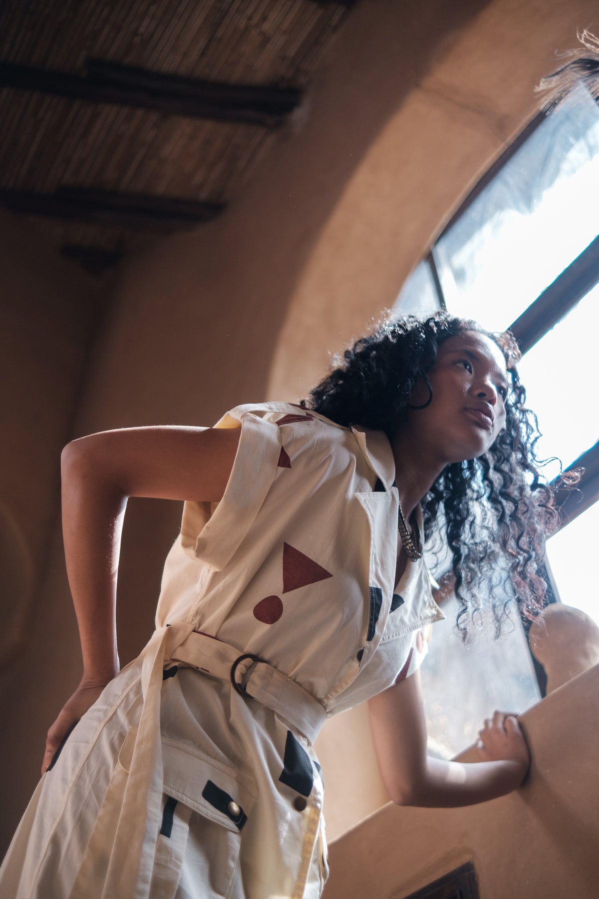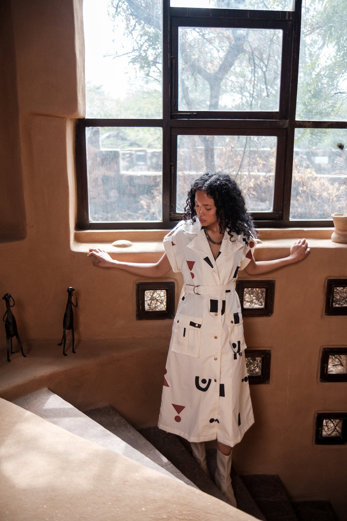 The Terra Tribe Ecru Triangle Printed Harajuku Trench