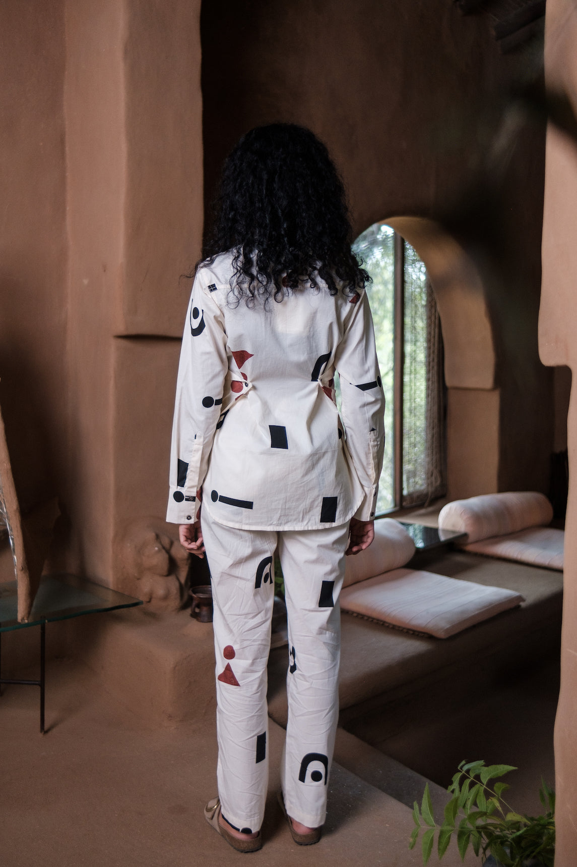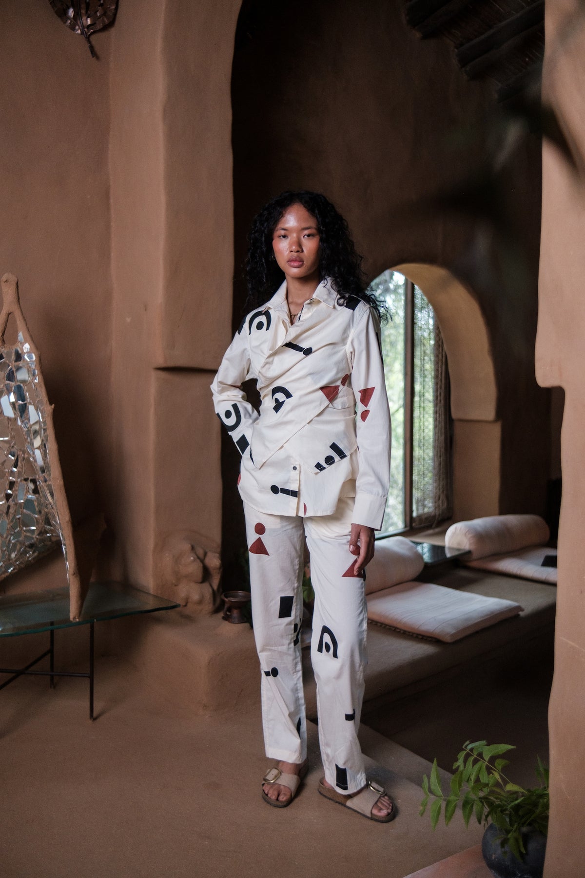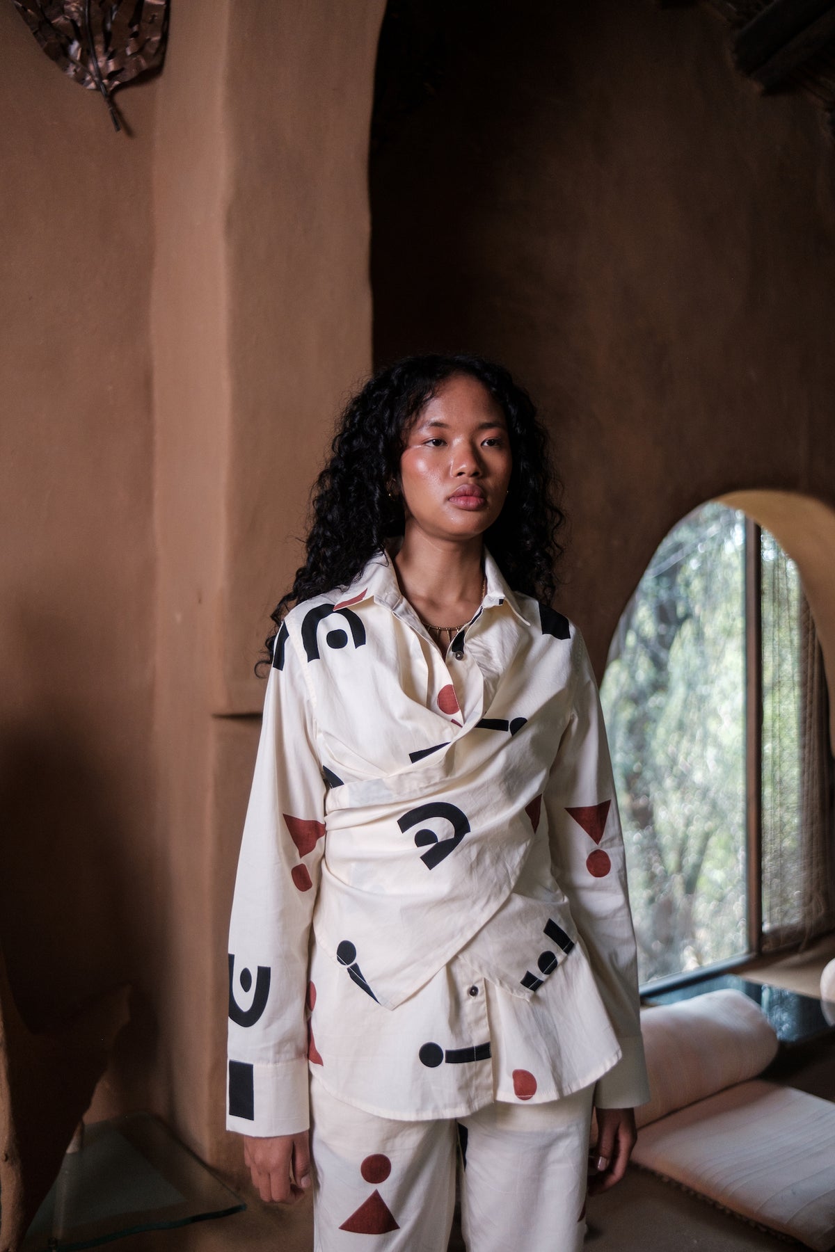 The Terra Tribe Ecru Triangle Printed Seattle Wrap Shirt