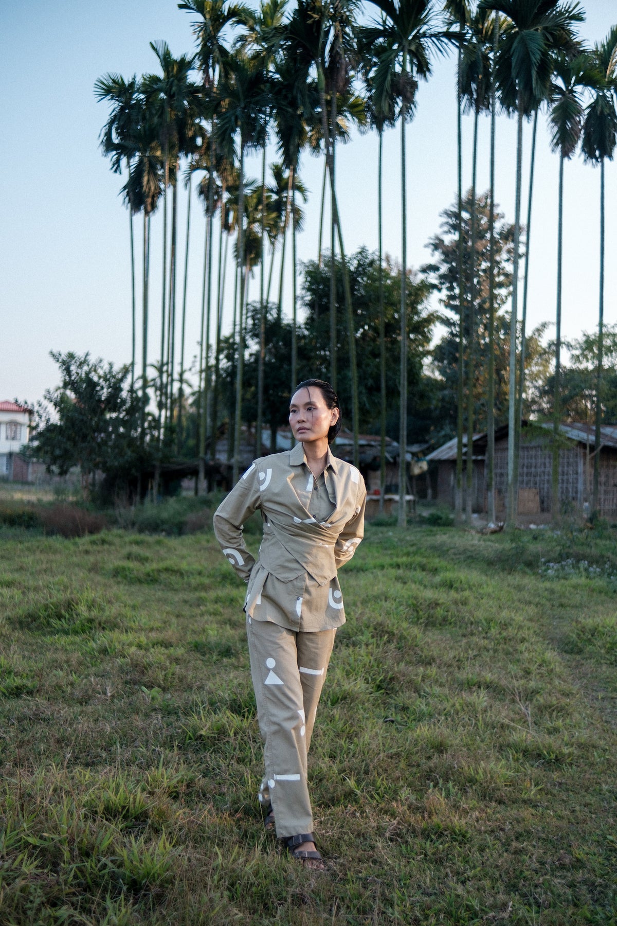 The Terra Tribe Khaki Triangle Printed Seattle Wrap Shirt