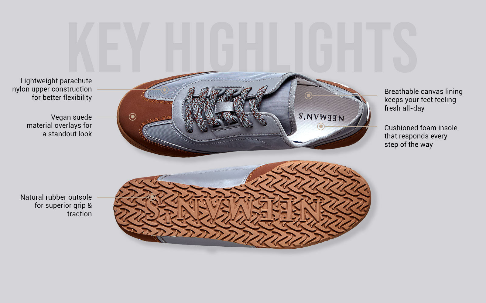 Presenting Urban Ease - A modern update on the classic canvas shoe. The update - An upper combination of vegan suede & parachute nylon breathes new life into this much loved silhouette making it light, breathable & flexible construction and the responsive cushioning of the foam insole feels like a divine intervention for your feet. All in all, a pair that will fit right in with your everyday objectives.
