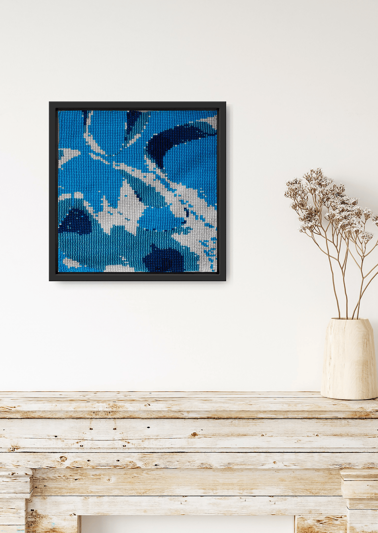 About the Collection: Handwoven on simple wooden looms by artisans in Bhavnagar, Gujarat, this piece embodies India’s fading bead-loom tradition. Tiny glass beads are woven into intricate patterns inspired by nature and geometry, preserving a craft once used to create torans that symbolized welcome and good fortune. Each artwork tells a quiet story — a meditative play of texture, light, and patience.