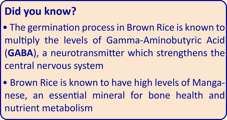 The germination process in Brown Rice is known to multiply the levels of Gamma-Aminobutyric Acid (GABA), a neurotransmitter that strengthens the central nervous system.
