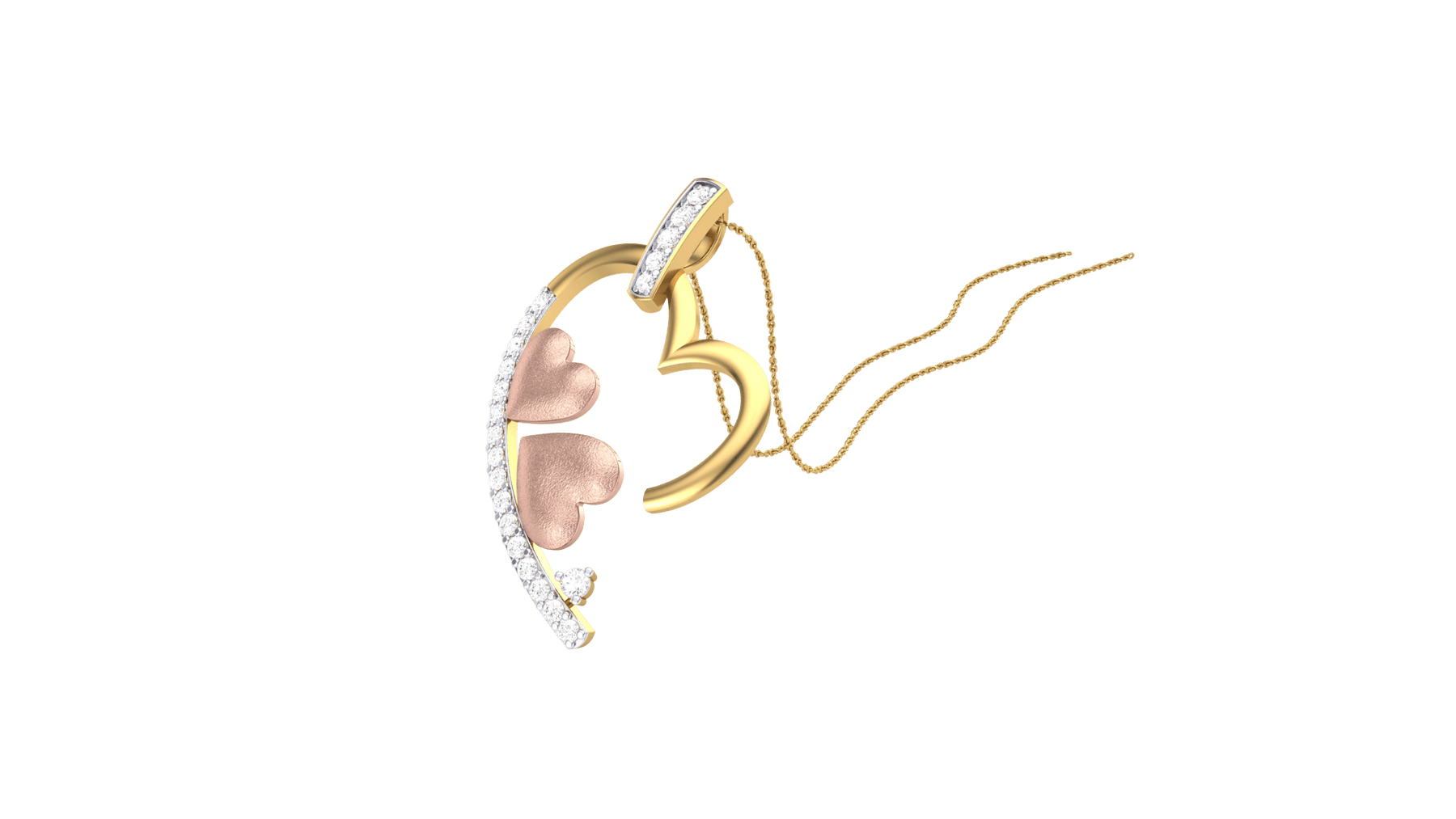 Celebrate the bond of love with the Twin Hearts Diamond Pendant — featuring two blushing rose gold hearts cradled within an open yellow gold heart frame. Accented with shimmering diamonds along a graceful arc, this piece is the perfect expression of affection and warmth.