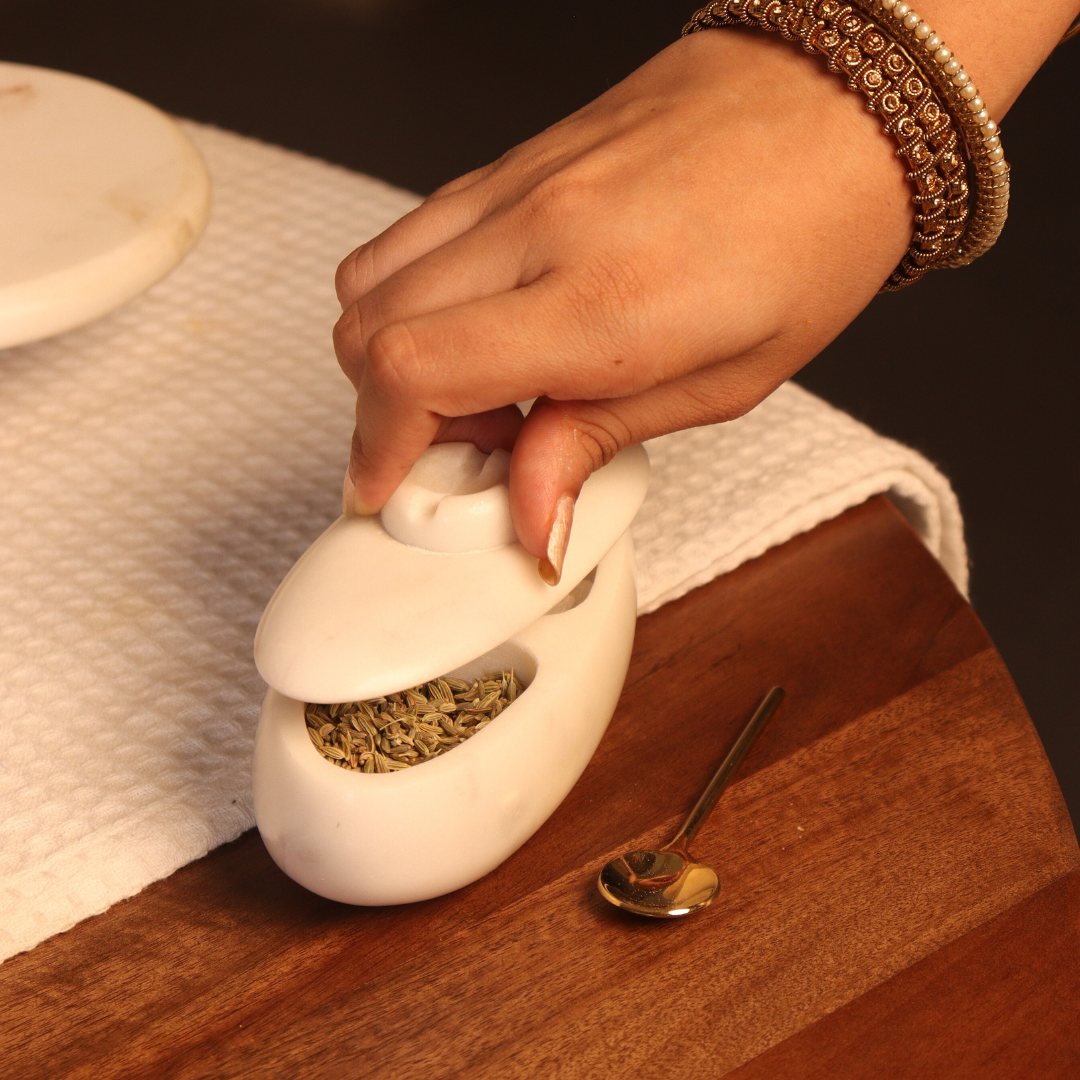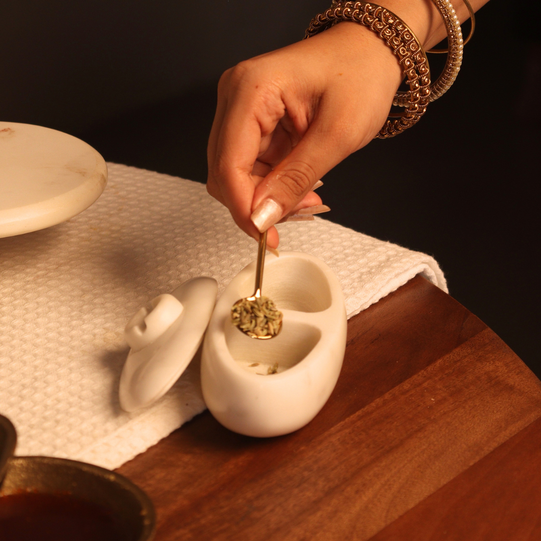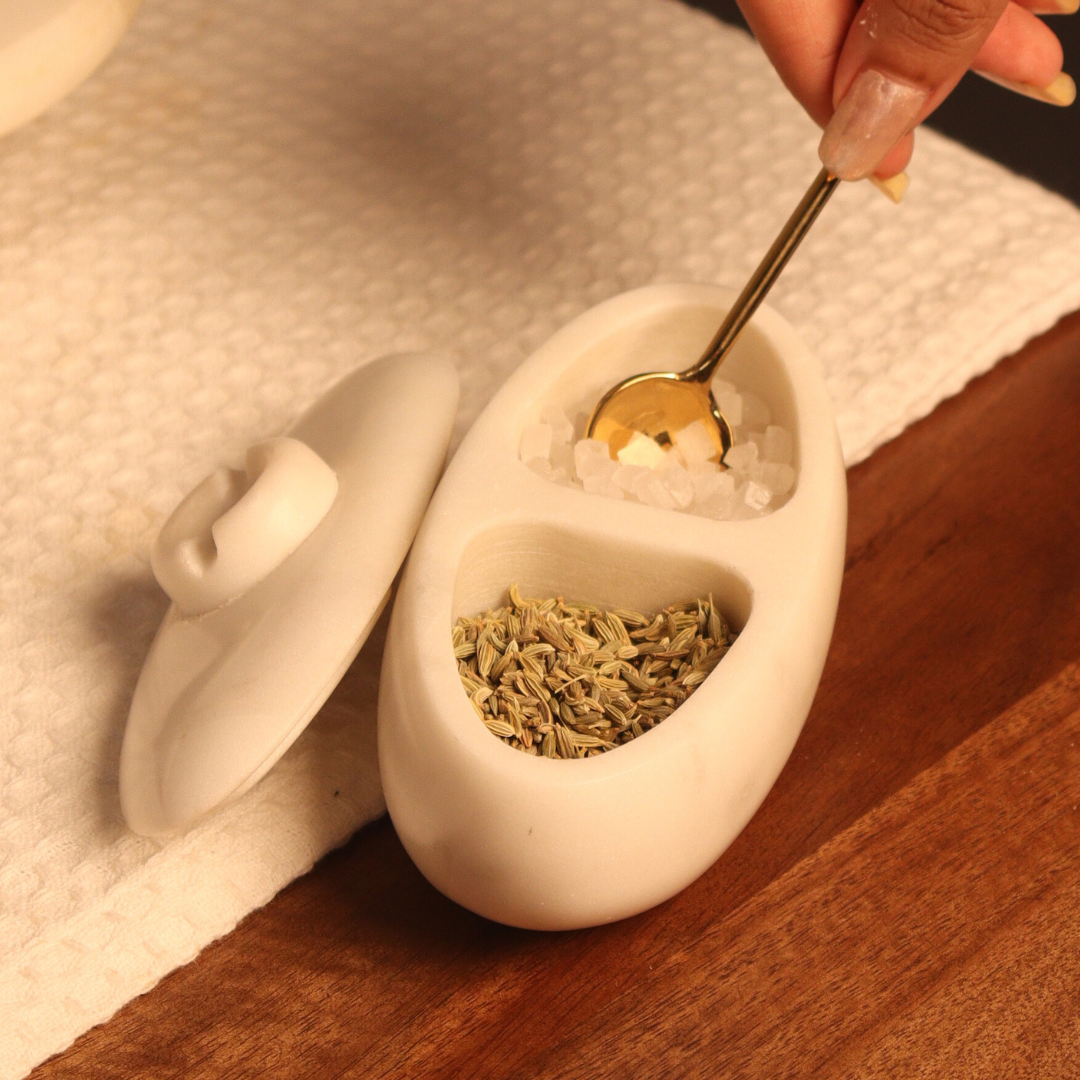 Each piece comes with an elegant gold spoon for a touch of sophistication that can be stored on top of the lid so you never lose it.