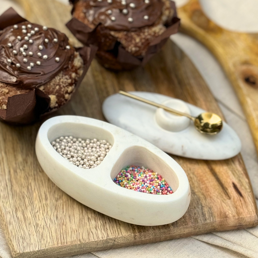 Simplify serving with our Twin Marble Server, perfect for dips, sauces, or condiments. The ultimate solution for easy and stylish serving, this piece is a must-have addition to your tableware.