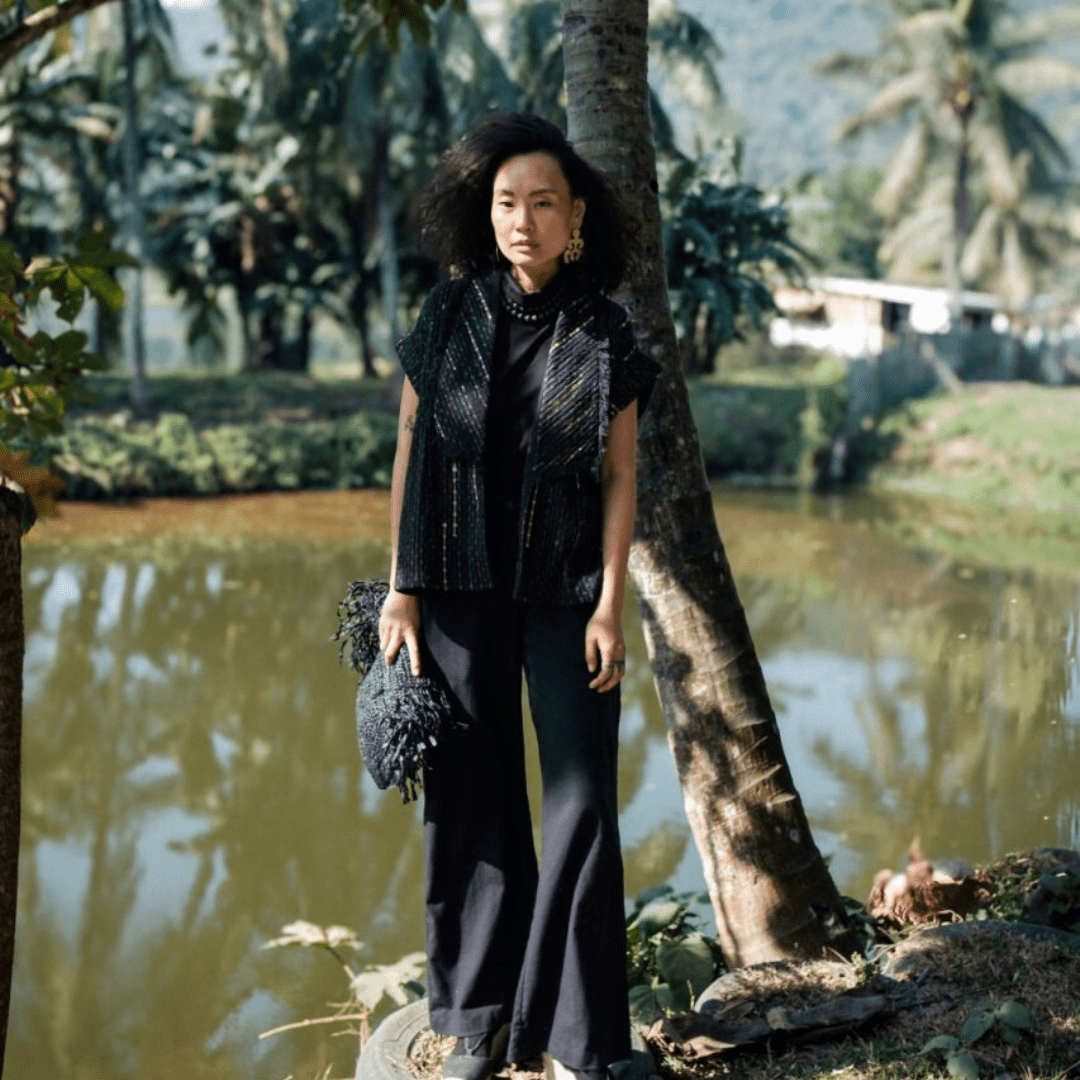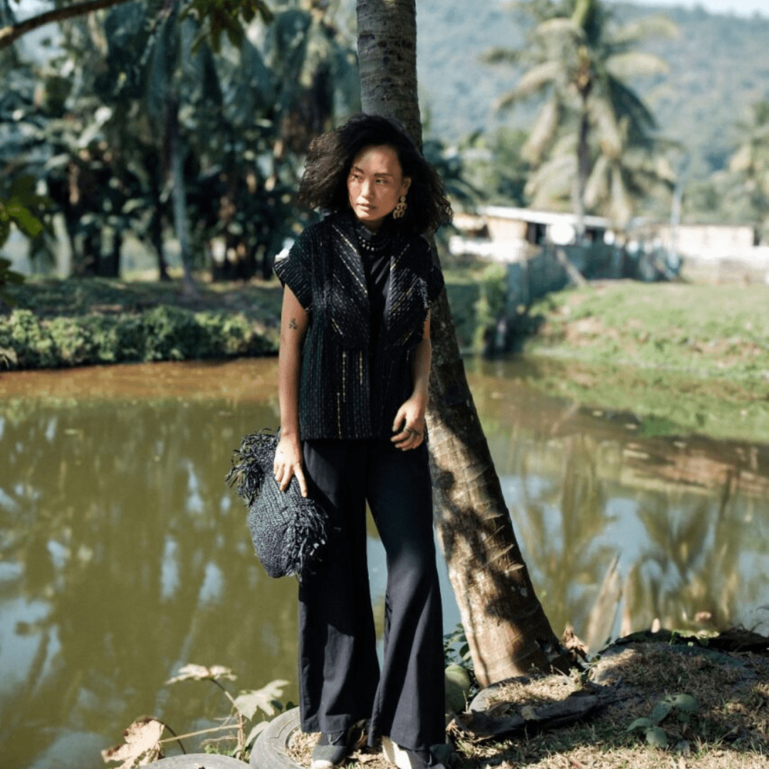 Upcycled Handwoven Berlin shawl collar top - Suspire