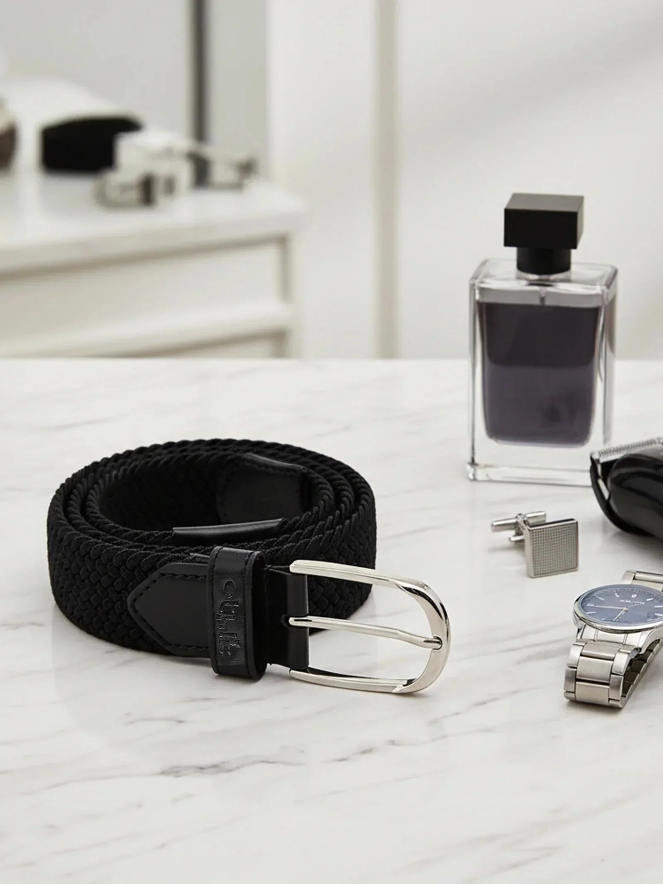 Its flexibility and no-hole concept, crafted with a stretchable braided poly-cotton strap and premium PU trims, gives you a perfect, adjustable fit—ideal for denims, chinos, cargos, and even smart formals.