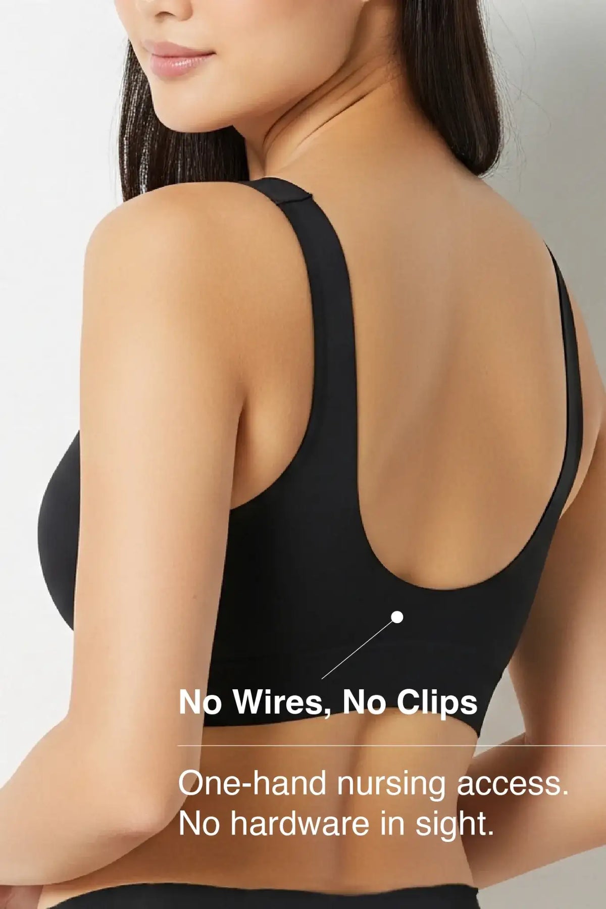 •  No Wires, No Clips: One-hand nursing access. No hardware in sight.