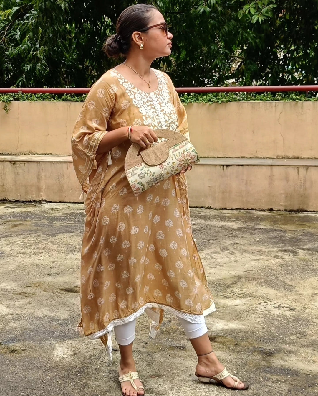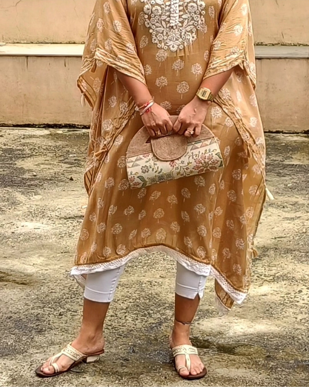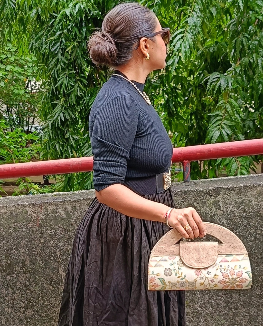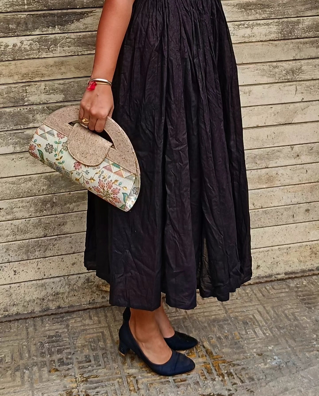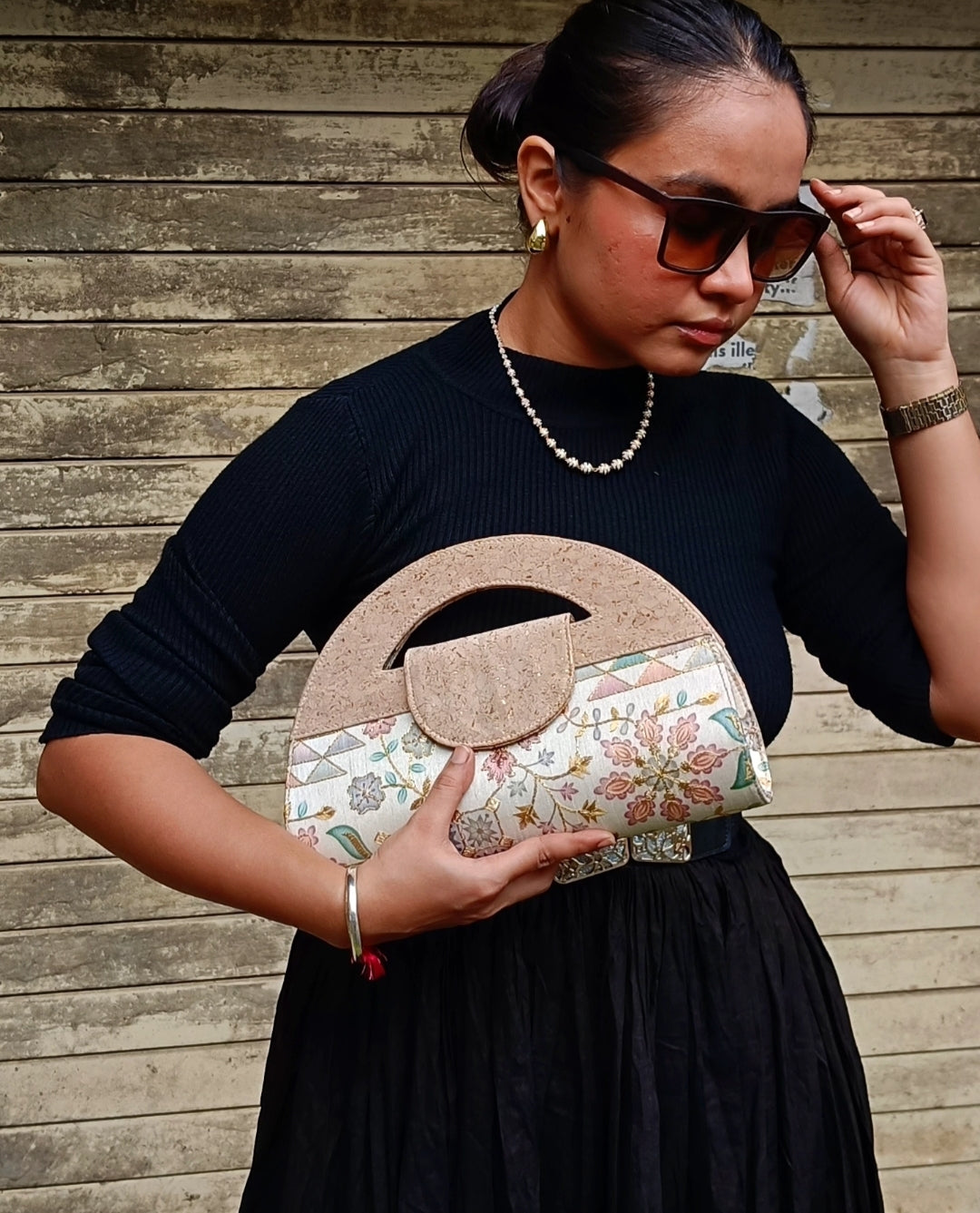 2)The Main Body is made from Vegan Cotton Material and the handle part is made from Organic Cork Material. It is a Combination of two materials in one bag.