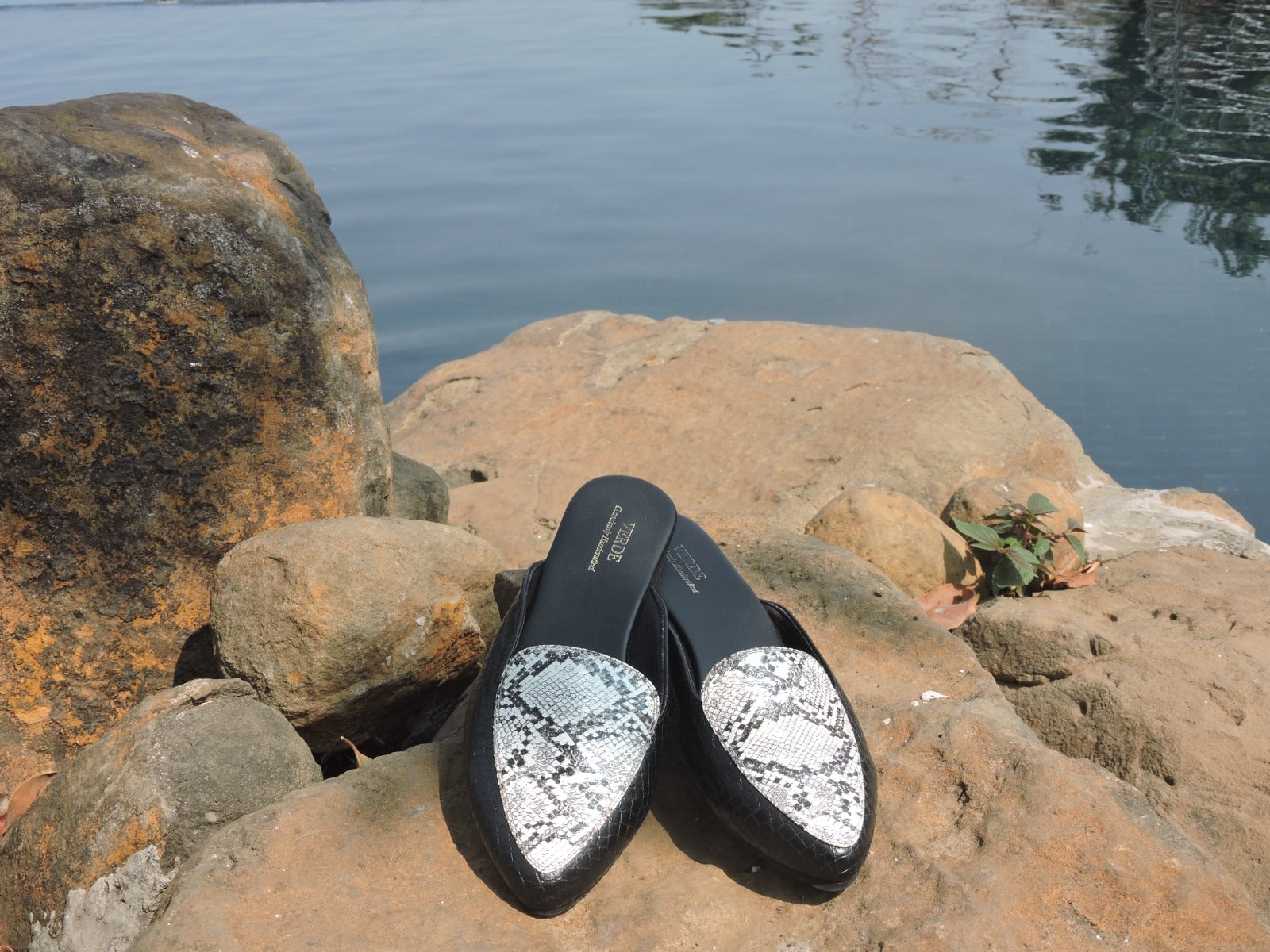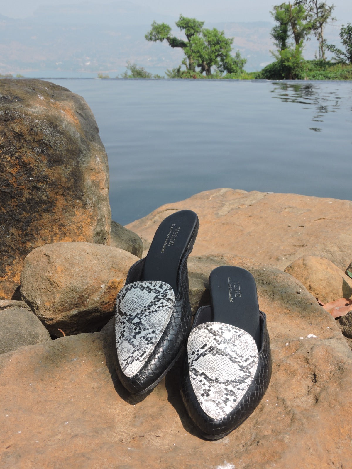 Material: PU Vegan Material (cruelty Free) is used to make this footwear. The Vegan Snake Print material is used for the upper. Plain Black colored vegan material is used to make the insole and the outsole is made from Upcycled Trye sole. The tyre soles are non-slippery, Waterproof and light in weight.