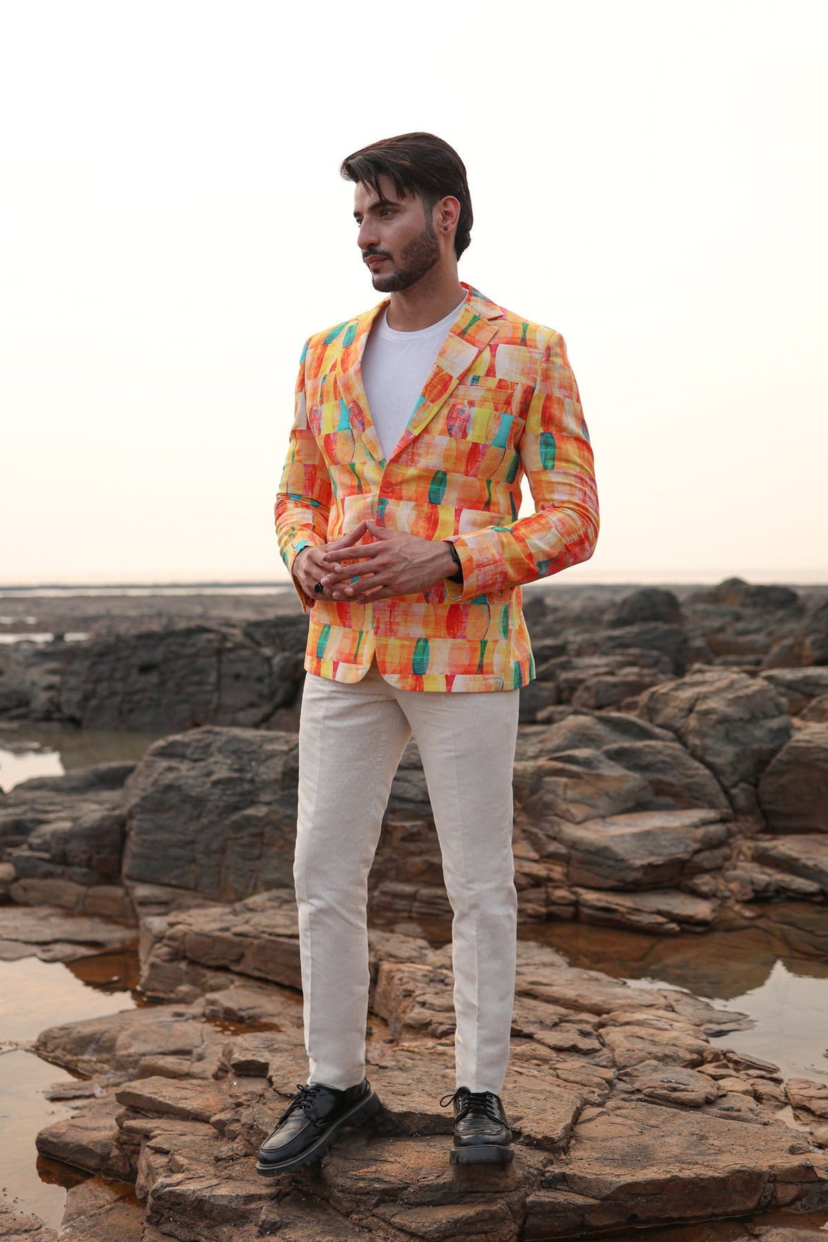 •   This model, Djharam, is 5'11'' tall and has 107cm (42") around the chest and 79 cm (31") around the waist and wears an L-Large.