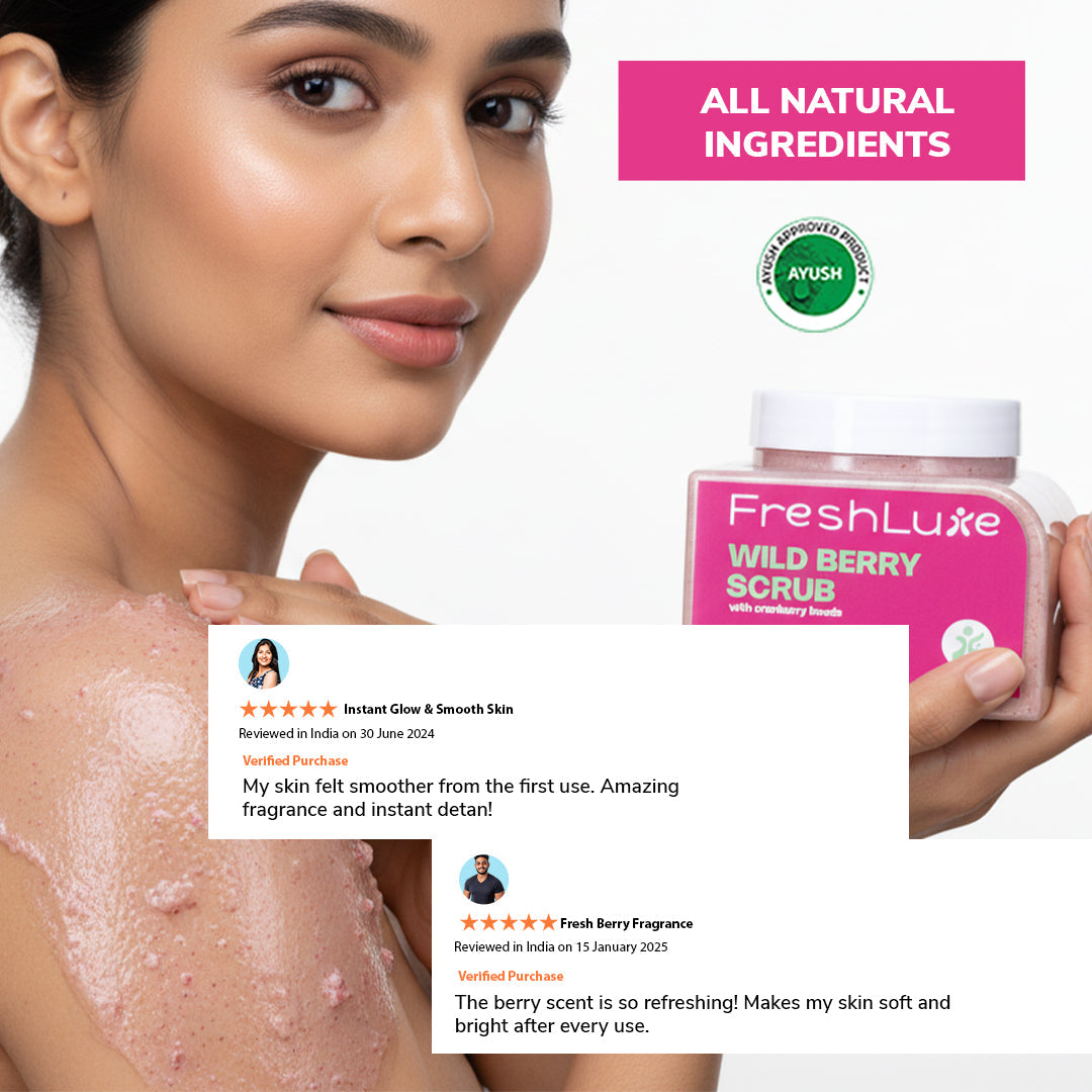 Wild Berries Face & Body Scrub | Vitamin E for Tan, Dead Skin Removal & Exfoliation | 200gm