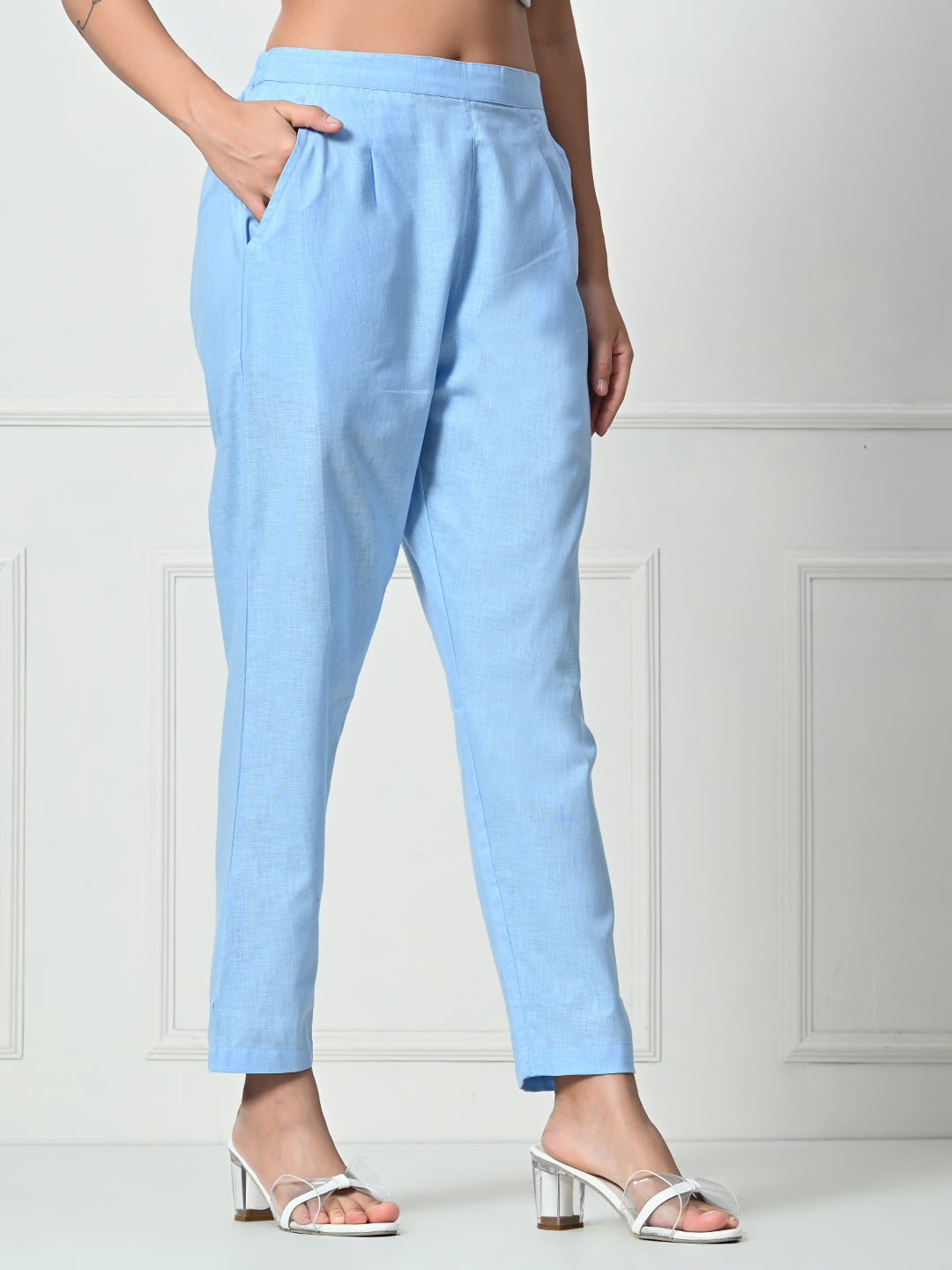 Bamboology Trends Women’s Linen Cotton Palazzo Pants – Effortless Style & Breathable Comfort | Blue