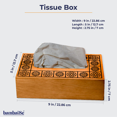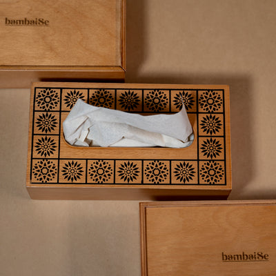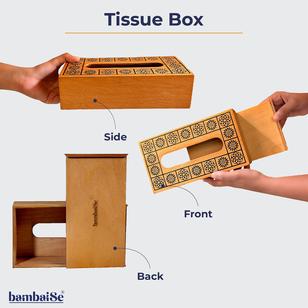 A wood tissue box made from a type of wood that is both lightweight and durable, making it easy to handle and able to withstand daily use. It is made from lightweight and strong wood, treated with a protective coating to increase its durability and resist moisture and water damage. The box typically has a simple, sleek design that is easy to open and refill. It is compact and fits comfortably on a desk or table.