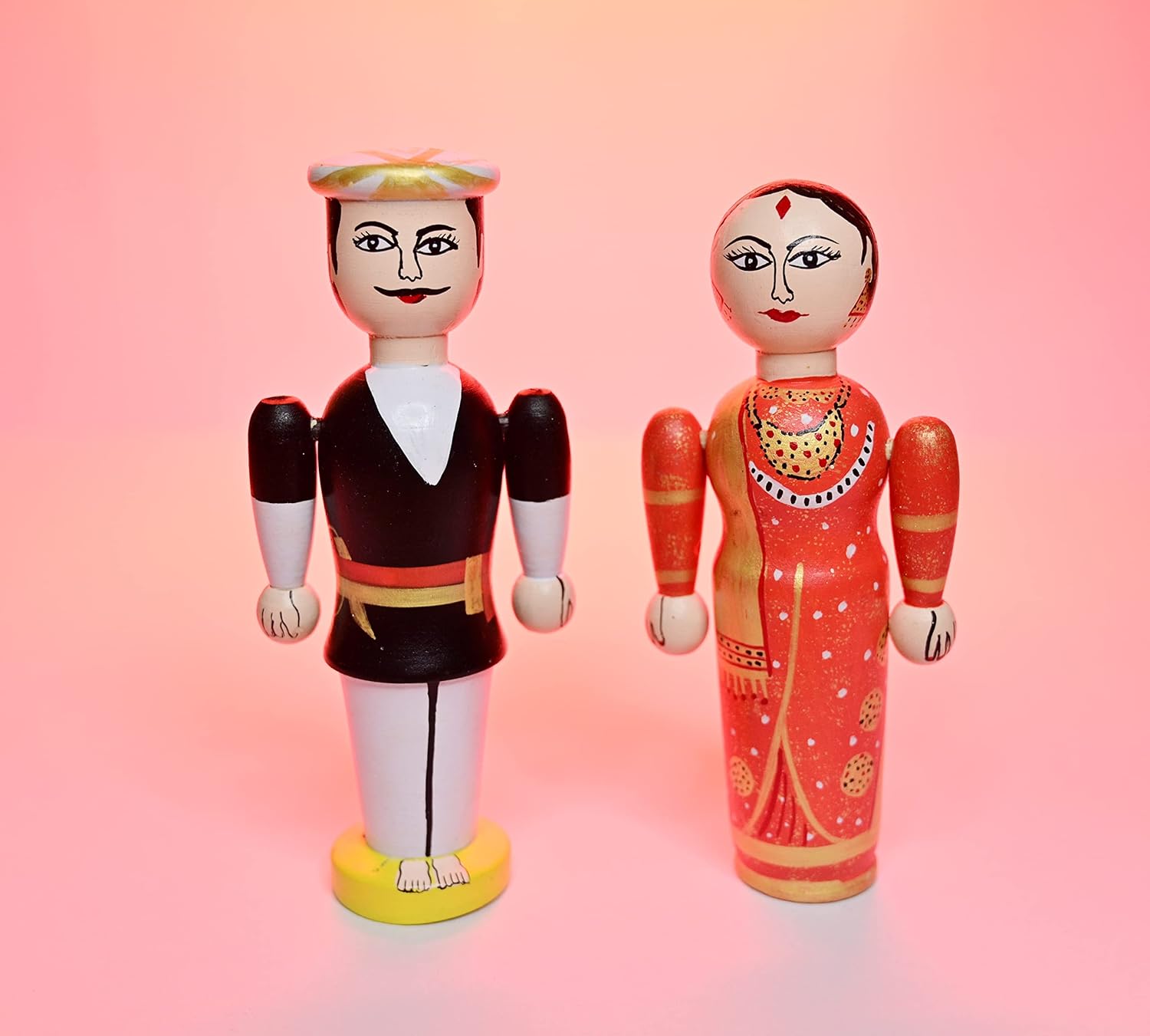 ✔Handcrafted Colourful Wooden couple dolls toy handcrafted by our artisans from Channapatna with a safe, medicinal wood - Wrightia tinctoria. The colours are safe and non-toxic.