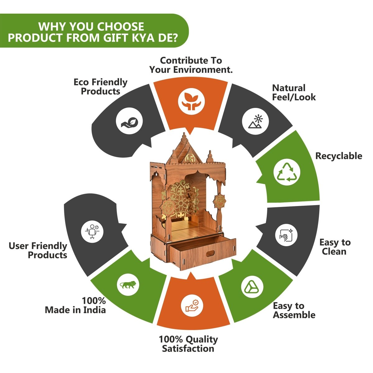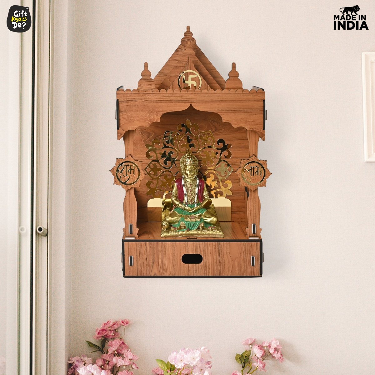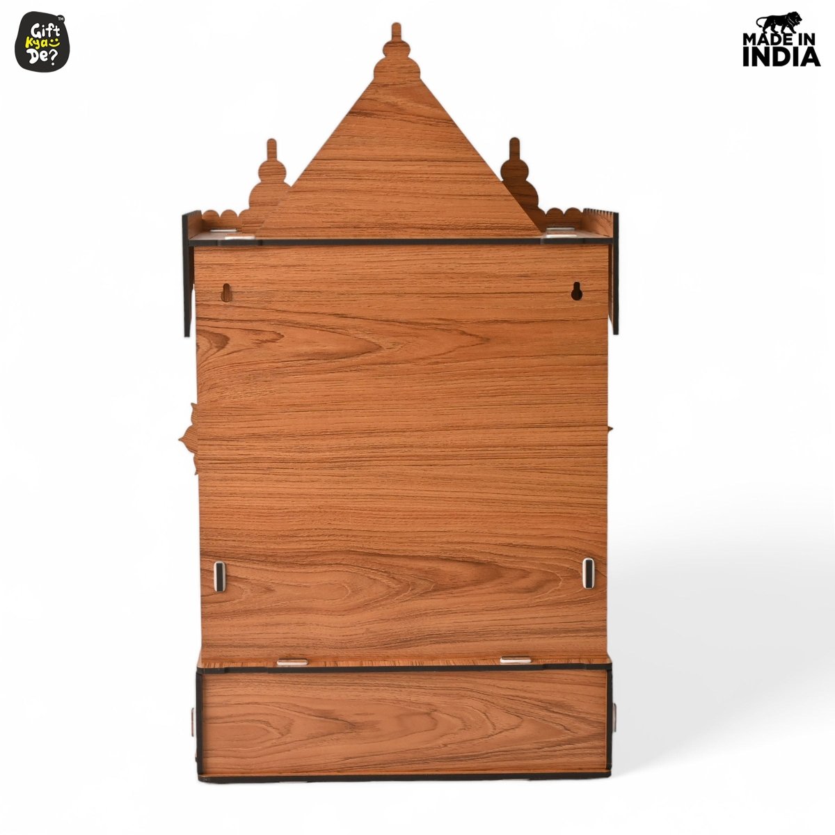 Gift Kya De Wooden Temple For Home & Office | Premium 3D Golden Cutwork Design | Mandir With Storage Drawer (DIY)