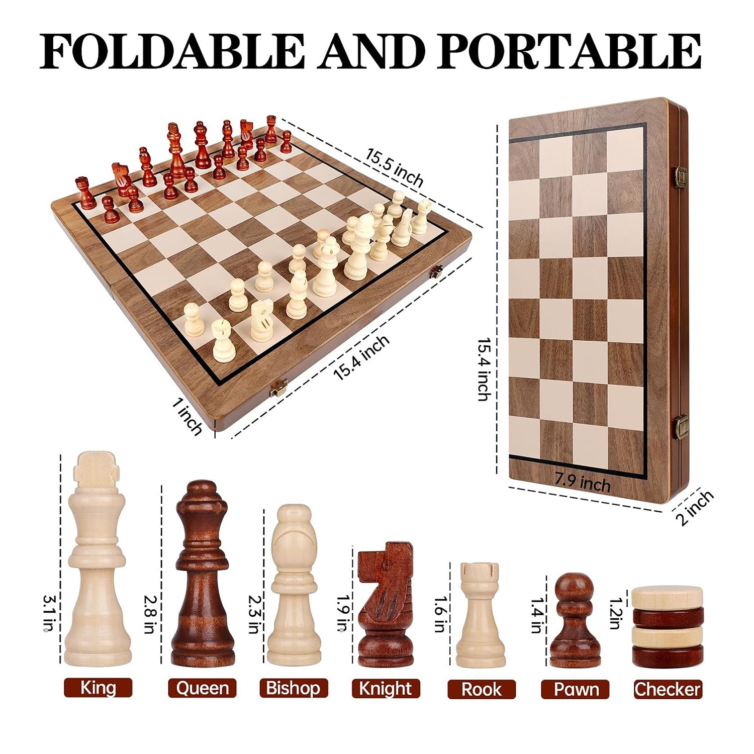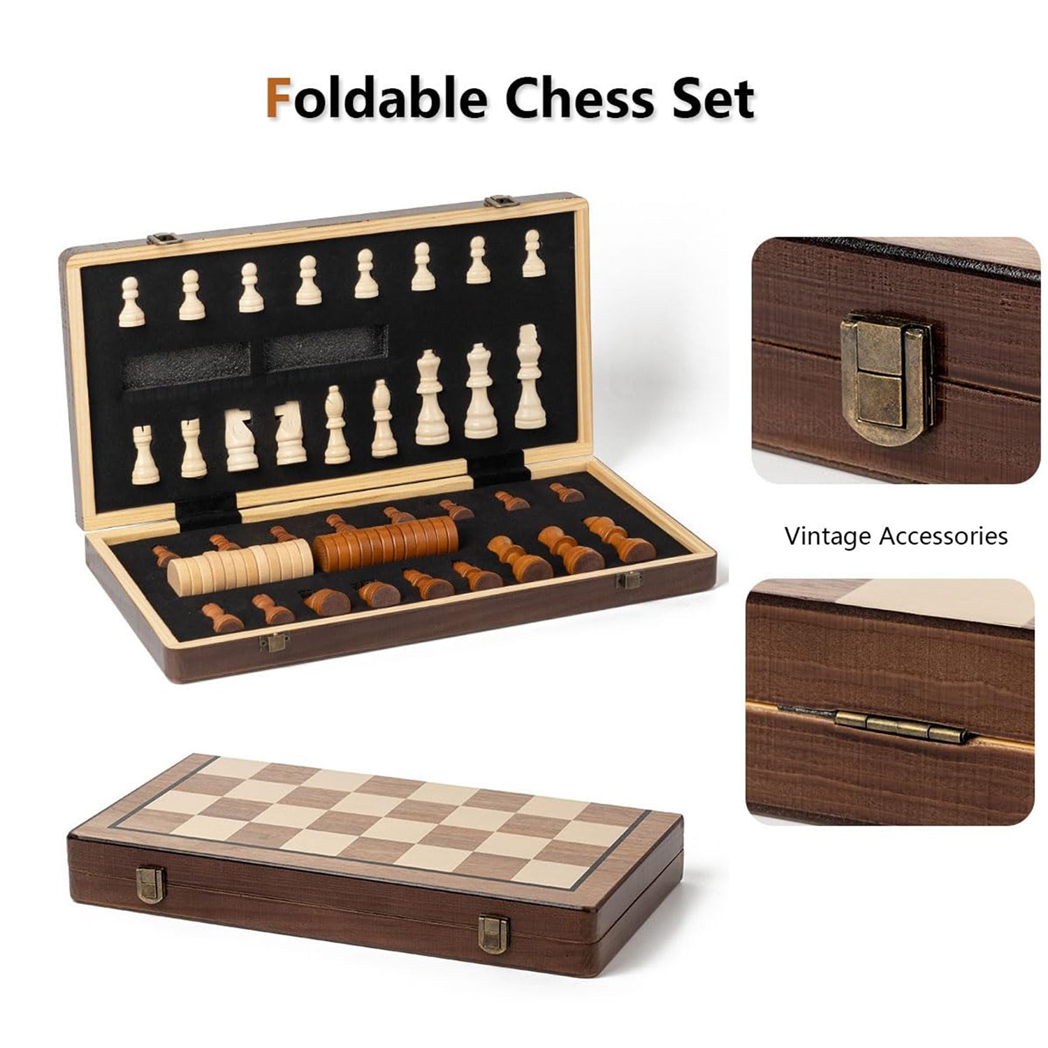 Wudly 2-in-1 Big Chess & Checkers Set – Premium Wooden Board Game for Adults & Kids, Classic Chess + Checkers Combo
