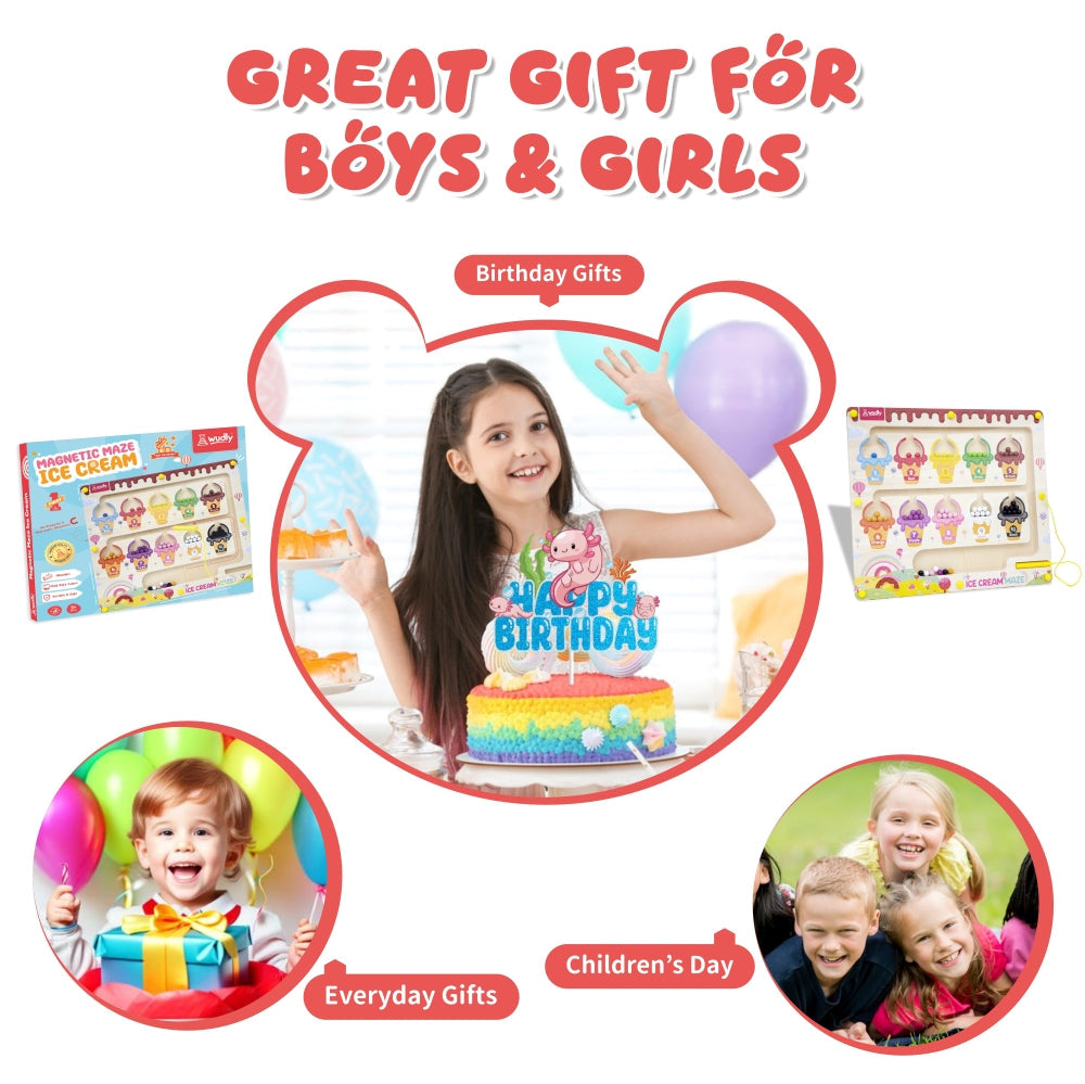 Wudly Ice Cream Maze, Magnetic Color and Number Maze - Educational Fine Motor Skills Toys for Boys Girls 3 4 5 Years Old, Wooden Color Matching Learning Counting Toddler Puzzle Board
